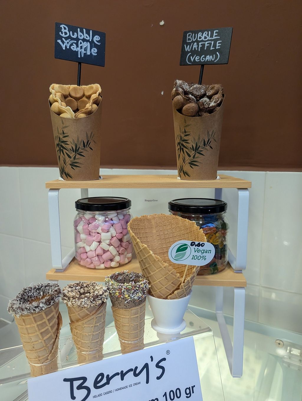 I ordered bubble waffle with snickers and nougat ice cream. Very nice place and a lot of differend vegan ice cream flavoures. Highly recommended!