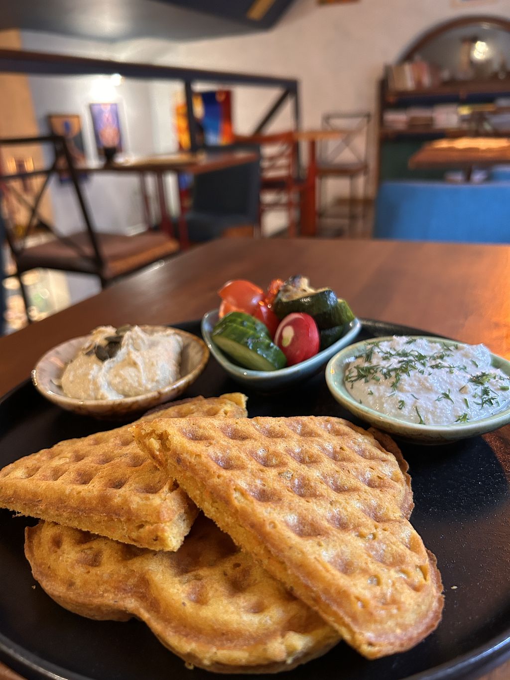 Very diverse menu and cute atmosphere, staff is super friendly as well! We visited the restaurant few times during our visit and have tasted savory carrot waffles, potato dumplings, portobella burger and tempeh ribs - I definitely recommend all of them:)