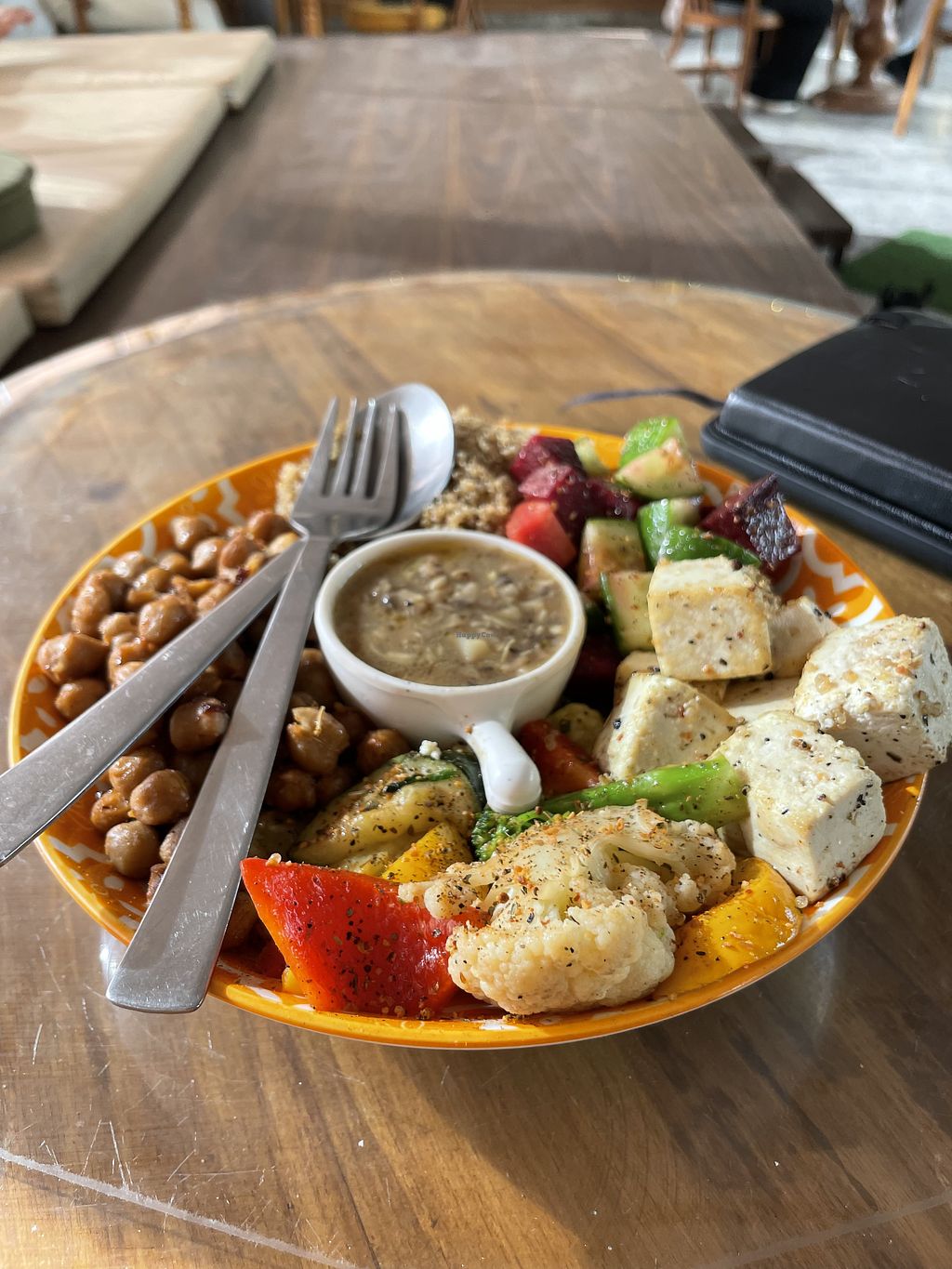 We liked their seating space and ordered the vegan quinoa bowl. The quinoa and chickpeas were delicious, but the tofu and all the veg were covered in spices and black pepper, even after I specified no chilli and no black pepper. We couldn’t eat half the plate. The mushroom sauce was too vinegary too. I am glad that the place is spacious and that they take card payments. Food needs improvement though.