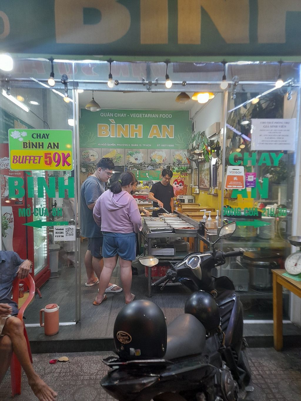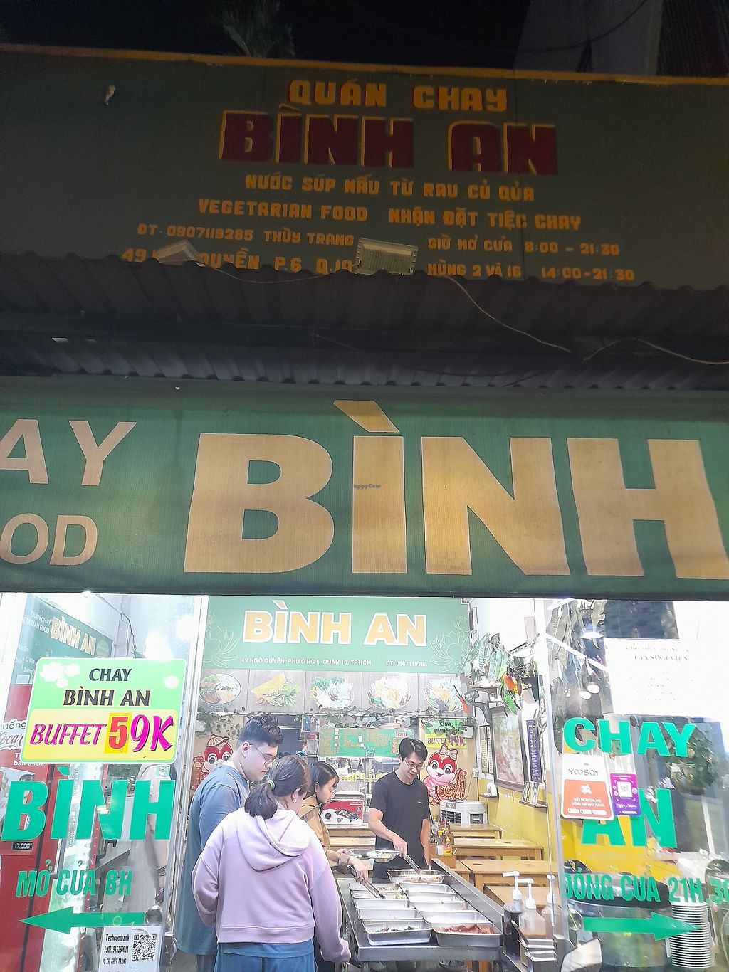 A fully vegan restaurant serving a huge variety of classic Vietnamese food from all around Vietnam. Freshly cooked noodles from mi quang to noodle soups like pho chay. Freshly cooked rice dishes like com chiên with mushrooms to broken rice with garlic. Com chay. Also has an all-you-can-eat buffet (ask about times). Free iced tea. Clean interior and clean kitchen. Fluent English spoken. No menu in English. Open Mon-Sun 8:00am-9:00pm.