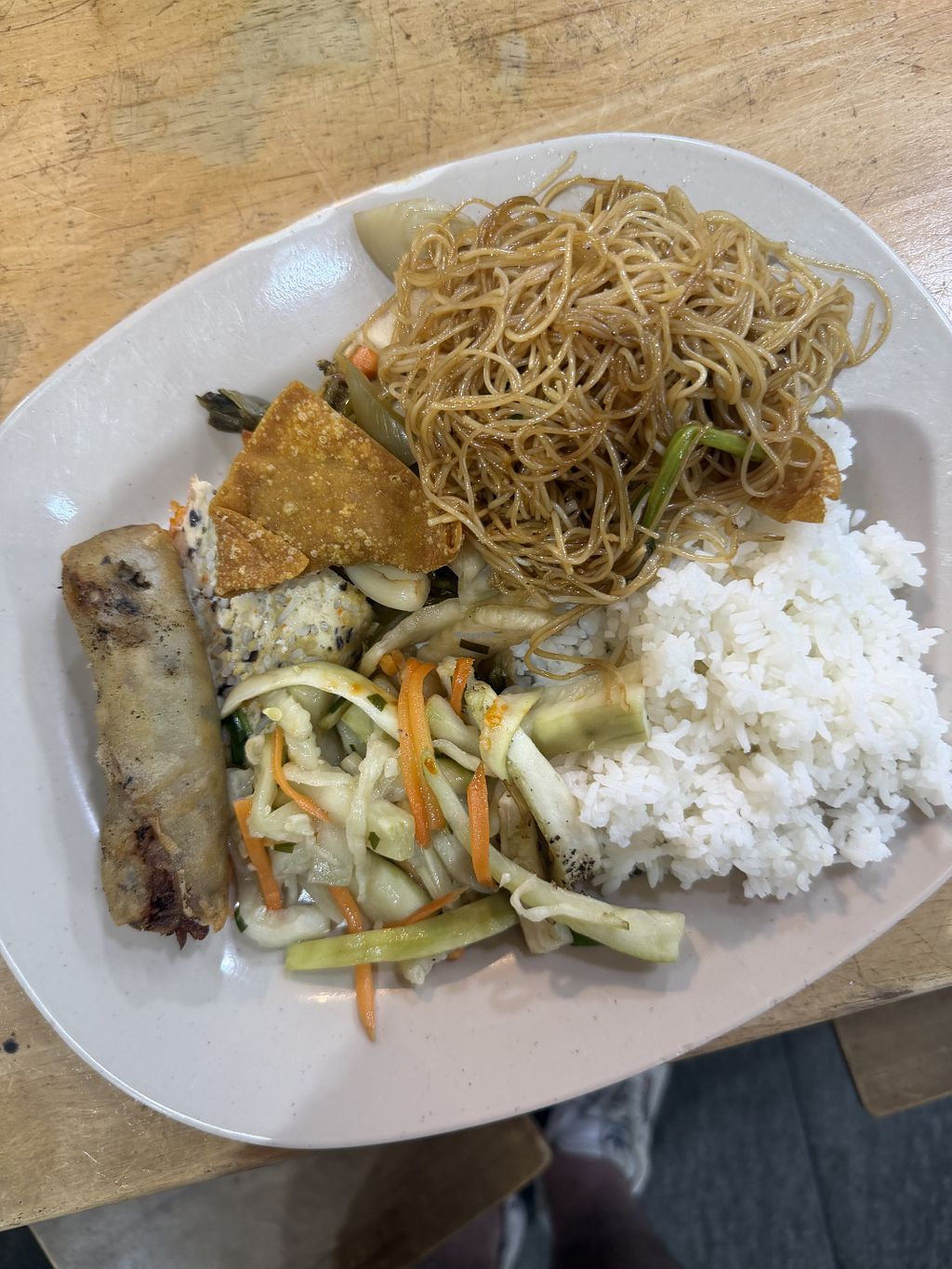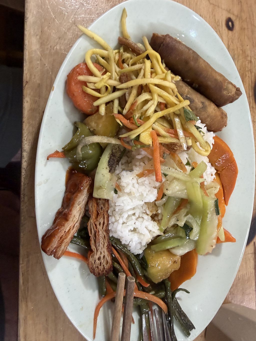 Great choices on the buffet and only 49k. A lot of vegetables rather than mock meat. There was one mock meat but it’s mostly vegetables and spring rolls and wontons. There was also a curry.