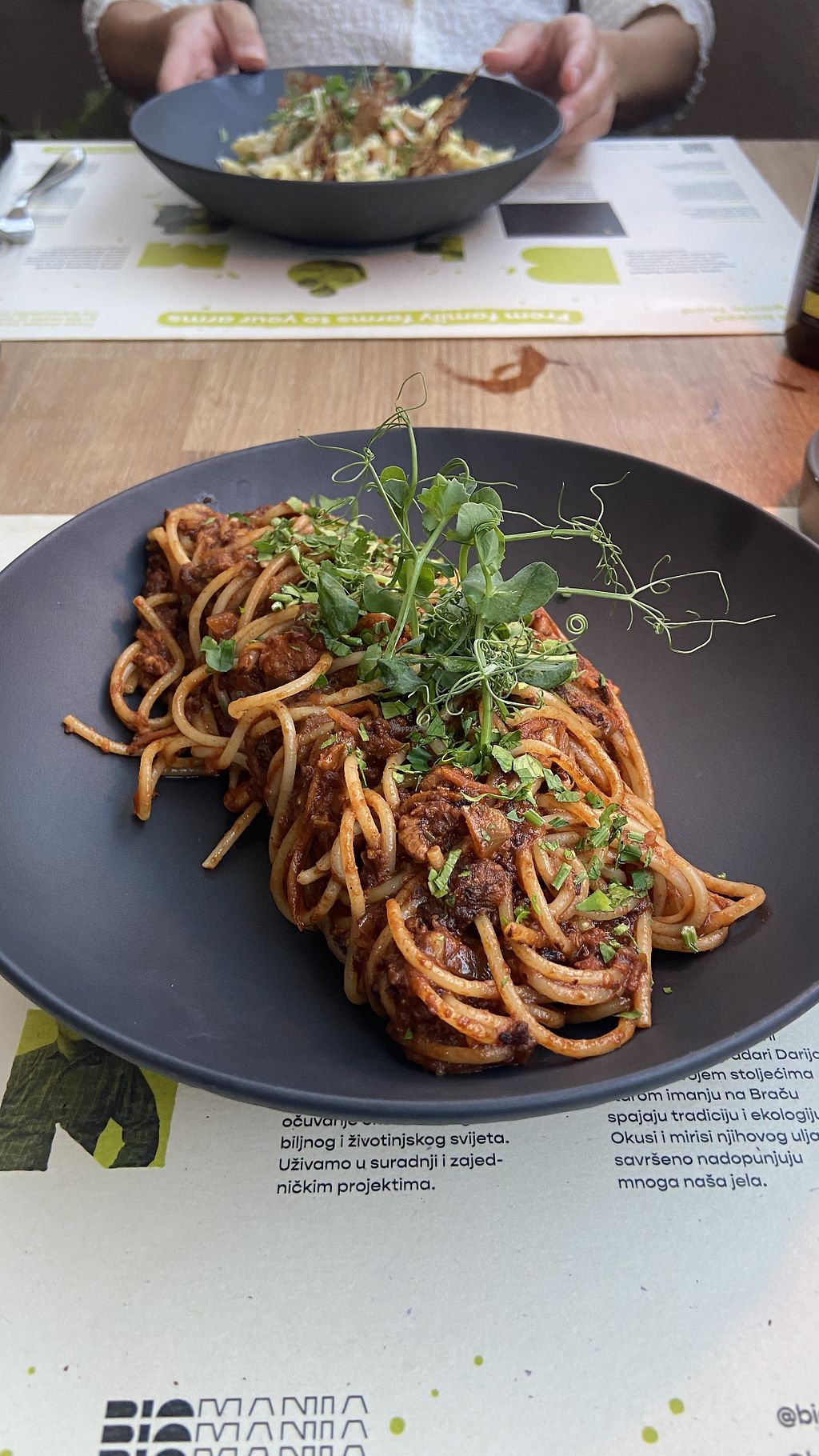 We had a great time with amazing food at BioMania! The staff was very welcoming and friendly during the whole evening. We had the soup and the pasta Bolognese and Carbonara. Everything was perfect and super tasty. If you like vegan or vegetarian food you definitely have to try this place 🙂