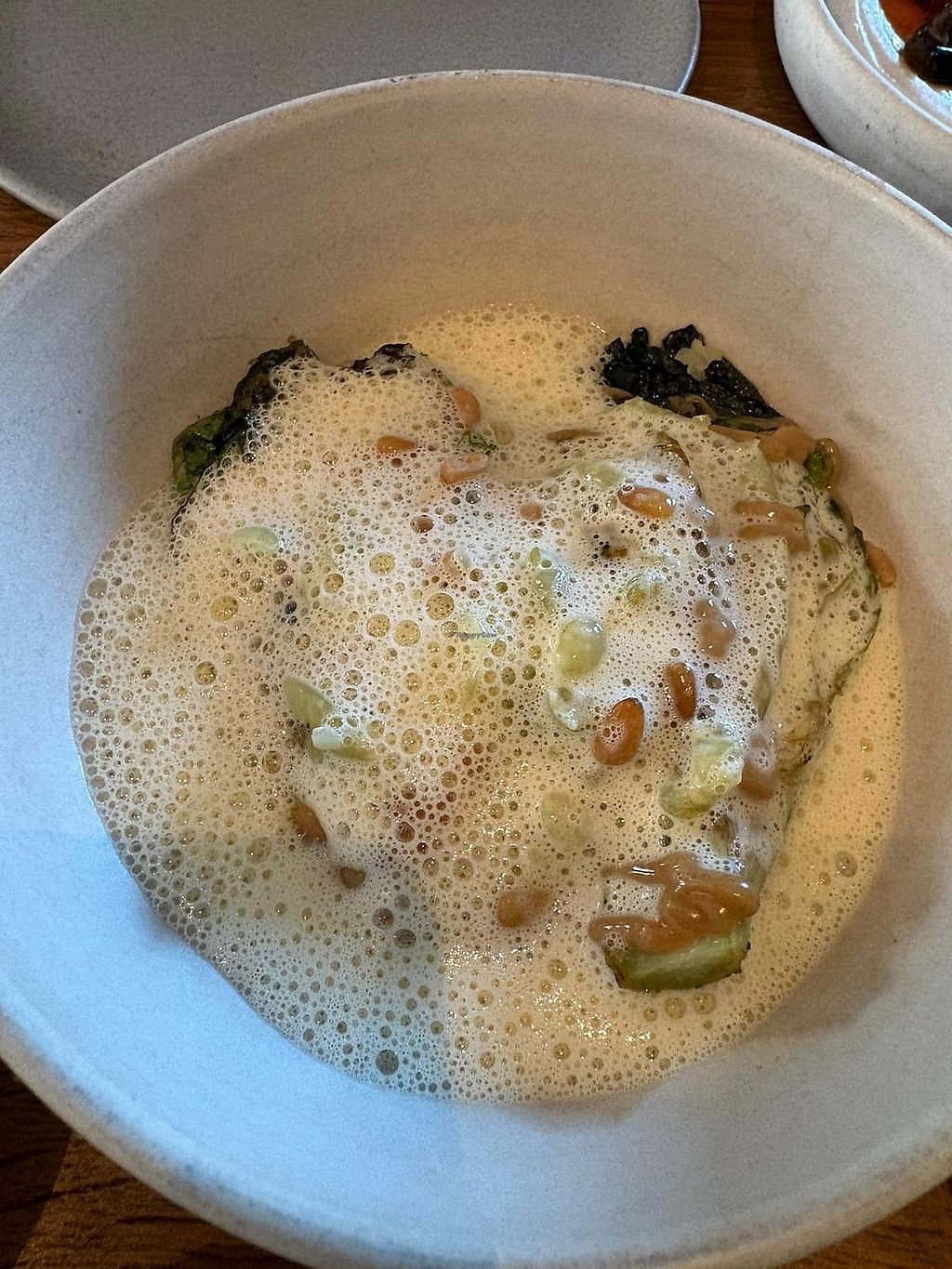 I had the tasting menu on a Saturday evening. Every dish was really carefully crafted, servers were really nice, atmosphere was great (nice music too). Every dish tasted so good! My faves were the fried mushrooms and the ‘milk’ bread which I’ll be dreaming of for the foreseeable future. I also had a non-alcoholic cocktail and it was great. Definitely worth the price, hopefully I can come back here again someday.