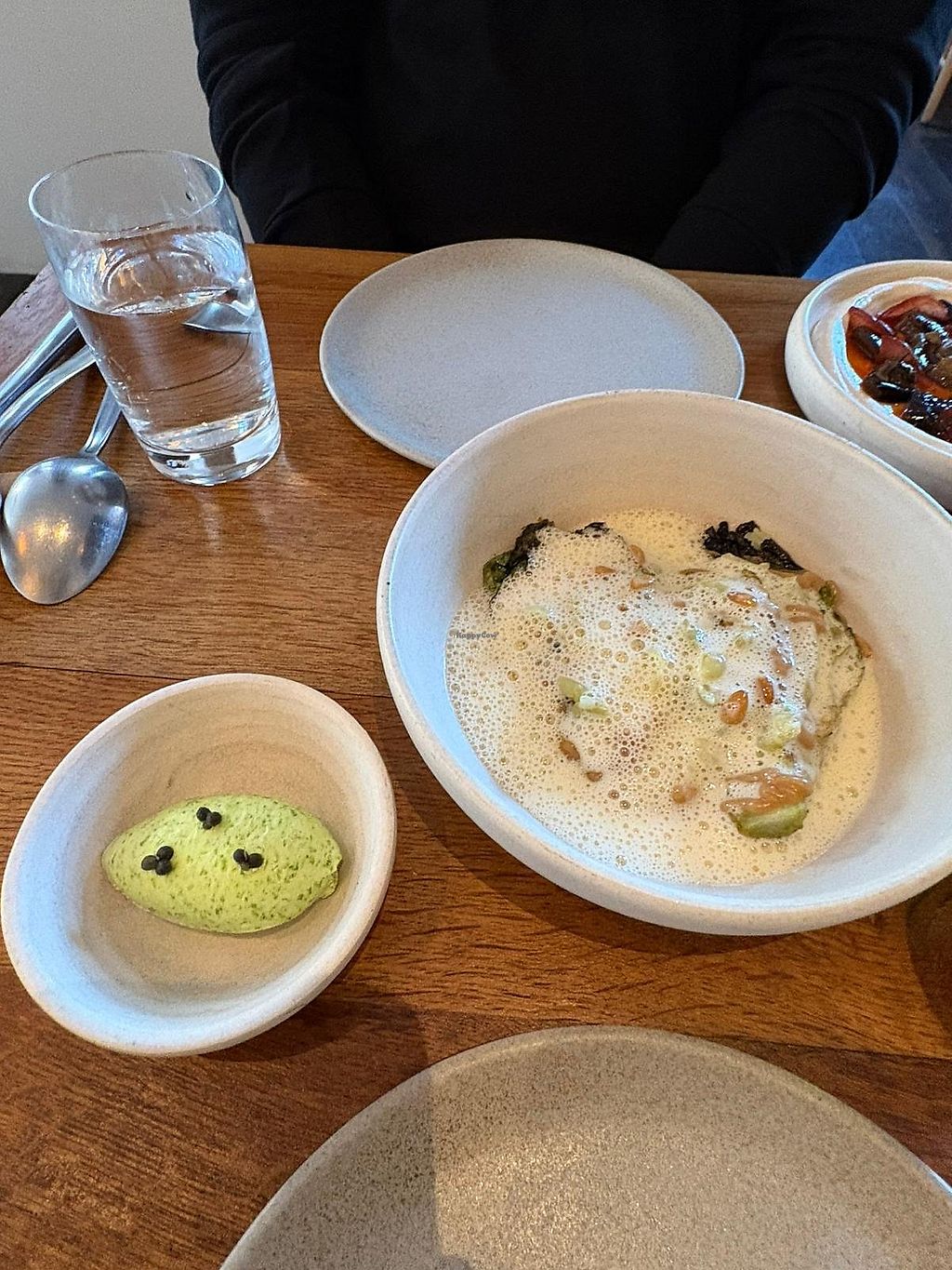 We decided not going for the set menu but ordered one of each of the savoury dishes on the menu instead. Some of th were great, some of them just ok. The kombucha/pear drink unfortunately tasted just like liquor and we didn’t even manage to finish it. All in all good - but maybe a bit over hyped?