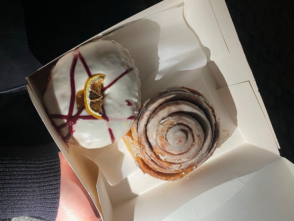 Very cool place! Visitied two times, once to buy a donut and once to buy breakfast. The donuts seems all really nice, I had a chocolate one. I also ordered a breakfast bagel with tofu, it was really balanced and had a great barbeque-taste.