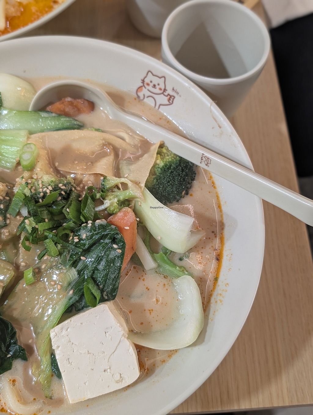 When with friends at this restaurant and found the place full of delighted people eating all around. I chose ingredients as I wanted, beginning with pastas (you may take rice vermicelli to avoid egg-cooked ingredients), adding a lot of vegetables and varieties of tofu. Being subject to cold in winter, I added a few shrimps as well. Then chose the curry+cocomilk sauce, and went with 3/5 on the chili strength. A delight for around 20 €.