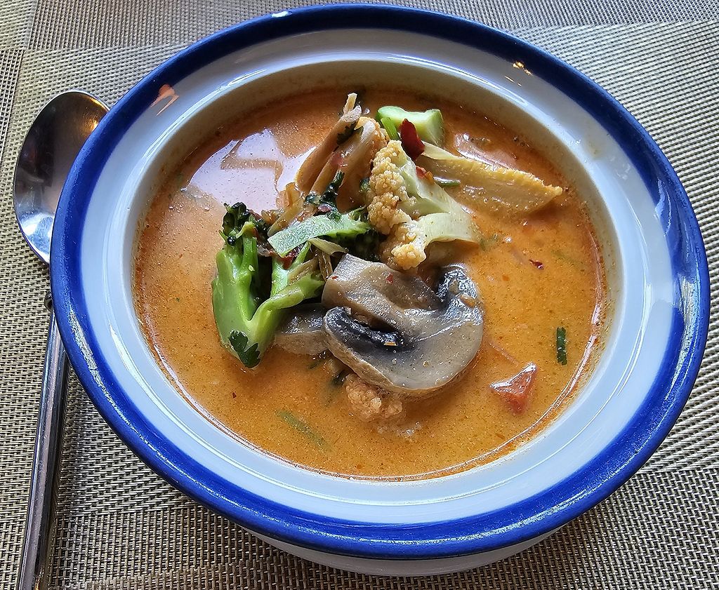 This restaurant has authentic Thai food all cooked by the one chef and owner of the restaurant. She makes everything fresh daily and serves a variety of vegan/veggie options. Any curry or stir fry can be vegan if served with only vegetables.
