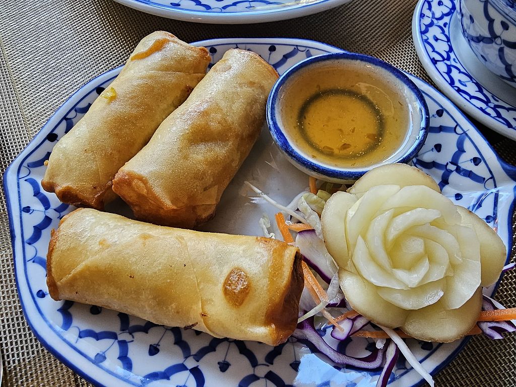 Serves meat, vegan options available. Thai restaurant with vegan choices. Menu includes a range of curries and stir-fries that can be made with vegetables in place of meat. Also offers starters including spring rolls and vegetable coconut soup. Specify no egg or fish/oyster sauce when ordering. Open Mon-Sat 18:00-22:00. Closed Sun.