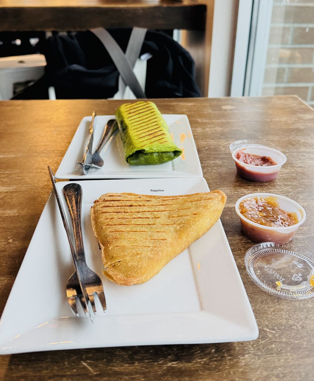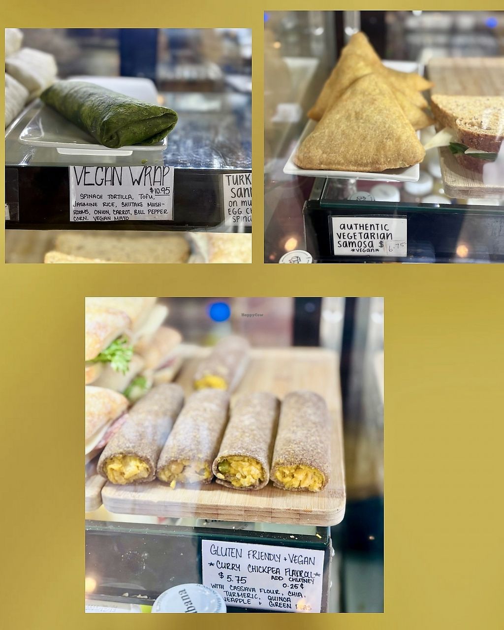 Tried the Vegan wrap (rice beans tofu) and Vegan Samosa (with mango chutney). Both tasted good and surprised to see multiple Vegan savory and sweet options here.