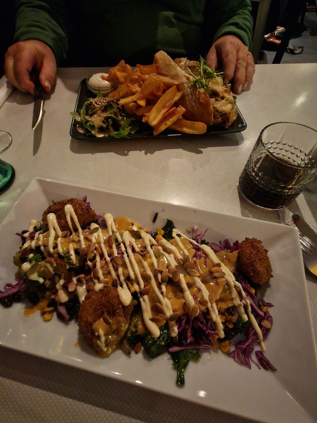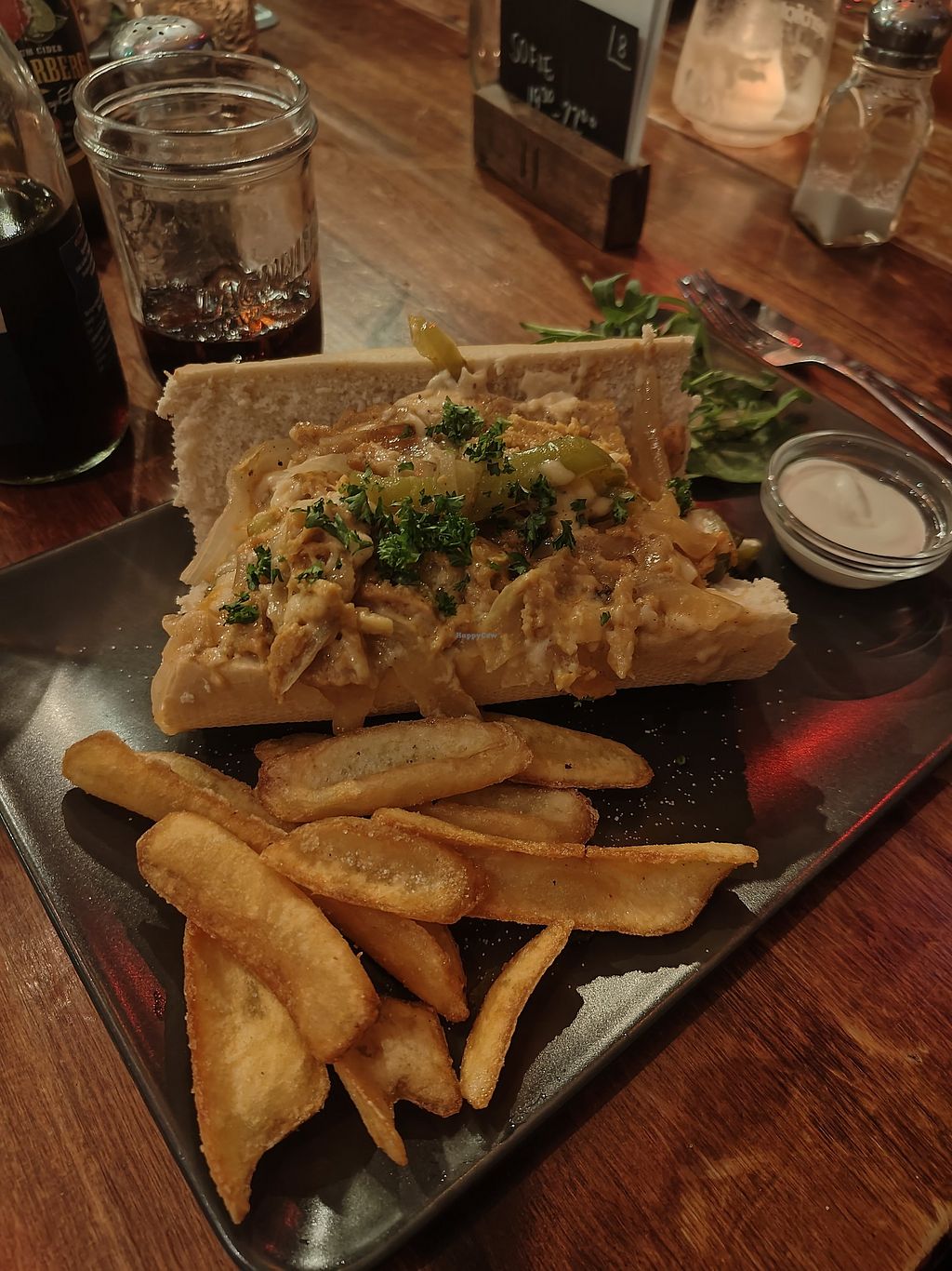 In the back the cheese steak made from seitan and chips 😋 in the front…