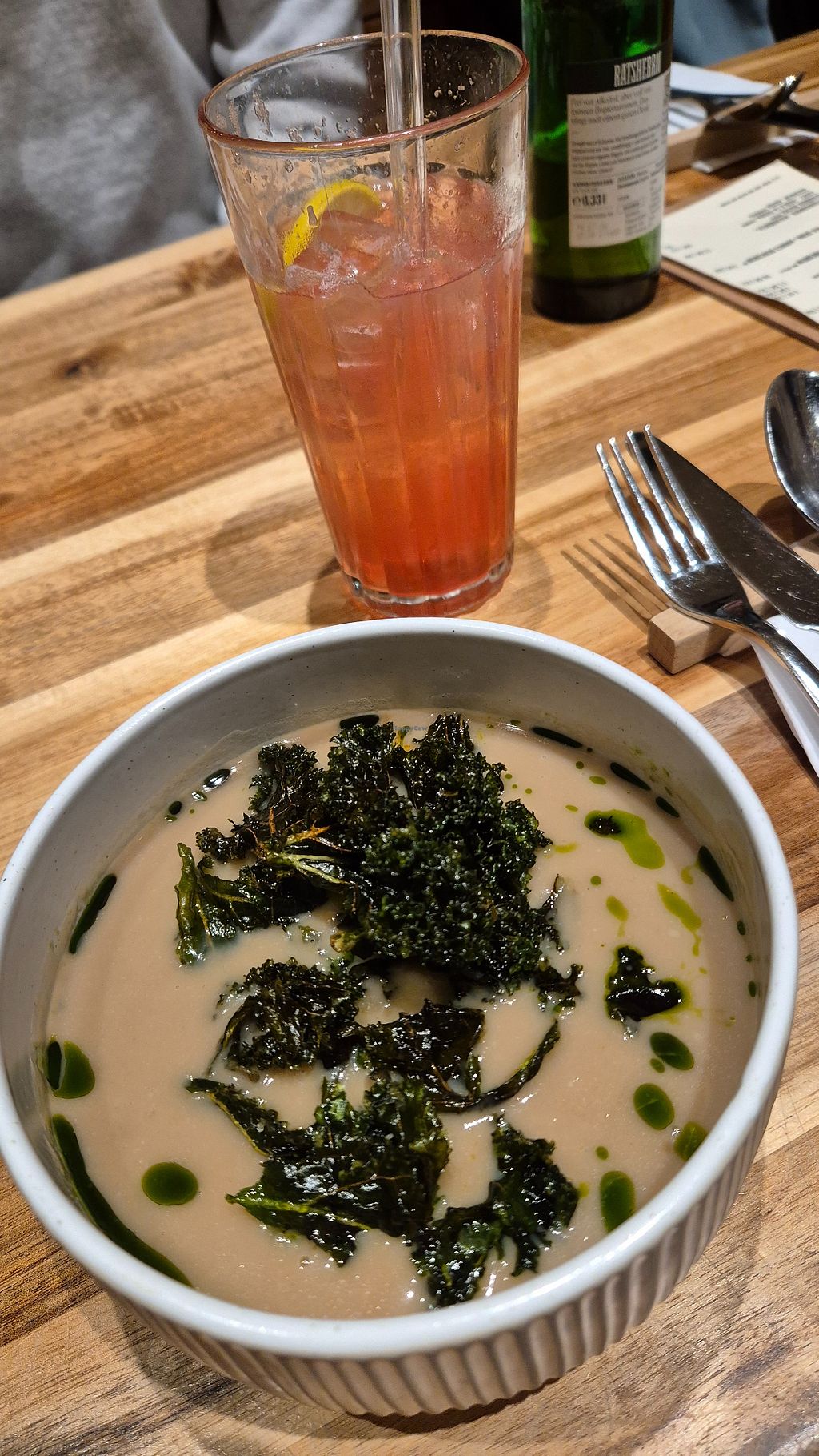 Beautiful interior (this place used to be a laundry apparently and still has gorgeous pompeous tiles, beautiful plants and great room accoustics), lovely staff, and menu focusses on regional & seasonal ingredients with 50% of the dishes being vegan. Had so many flavoursome encounters with chestnut, kale, parsley root and quince, and I absolutely loved every dish I tried. Honestly, the portions were not small at all, and I kinda loved that the price range is below fine dining and about the same as German traditional Wirtshaus/restaurant prices. A visit to this place is very recommended if you are in town!