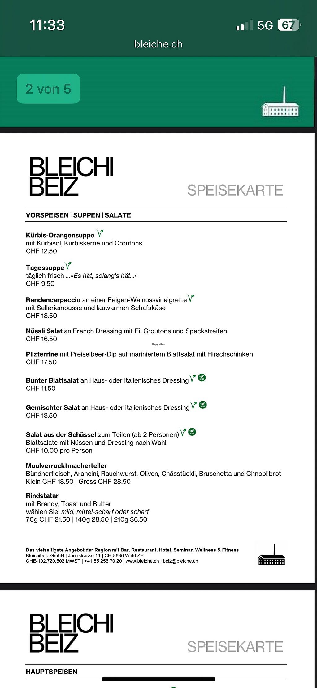 Traditionsbeiz/-restaurant, das aber auch eine ordentliche Auswahl an (sehr leckeren!) veganen Speisen anbietet. Wurden sehr positiv überrascht, zum einen von der Auswahl, zum anderen dass die Steinpilzravioli absolut köstlich waren. Die Serviceangestellten wussten bzgl. Inhaltsstoffen und Zutaten Bescheid und waren sehr freundlich. Alle veganen Speisen sind in der Speisekarte mit dem Vegan-Logo gekennzeichnet. Die Preise liegen absolut im Rahmen.