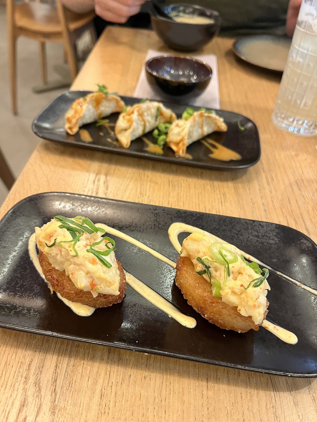 I was excited about sushi and thrilled to find so many other amazing options! I had planned to order the sushi platter and then had to opt for ordering starters- gyoza(crispy), tartare(too much truffle cream), arancini and then three different rolls. Perfect amount of food for lunch. In hind sight I would avoid anything with truffle, it just seemed to overwhelm the dish.