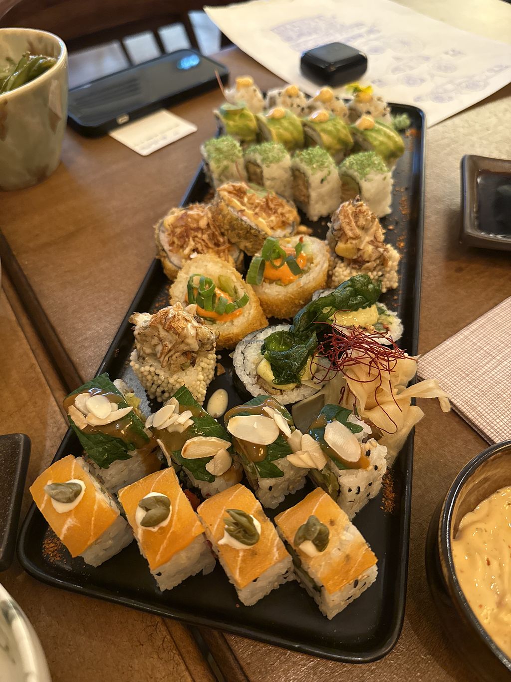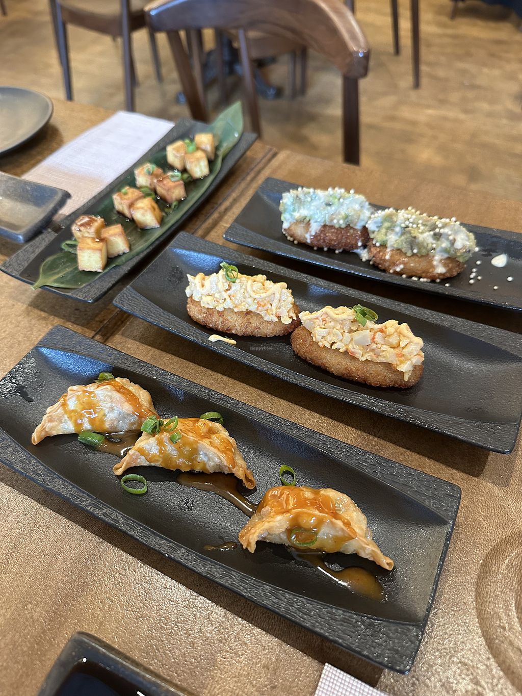 Delicious sushi, interesting combinations of plant based ingredients. I loved the mushroom crispy rice so much that i ordered it again for desert! Miso soup and risotto balls delicious. Lots of plant based fish on the menu too.
