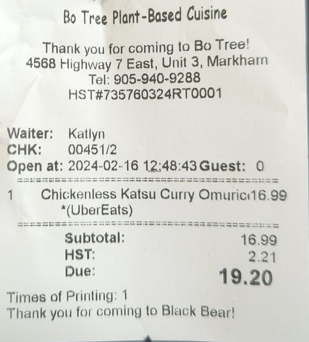 First time ordering here. Did not know what to expect. It was a huge meal, I loved the curry and the chicken-less bites were amazing