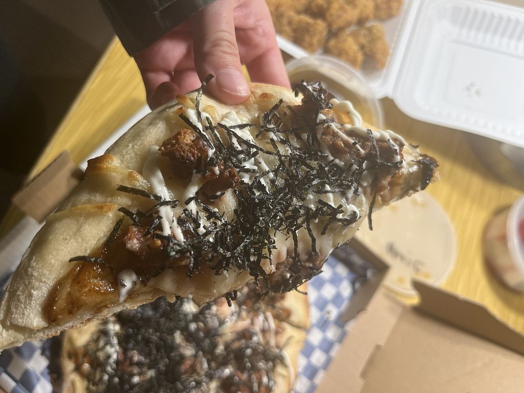 Read moreNow I was skeptical of the pizza because seaweed on a pizza was new for me but it was honestly pretty good. Wasn’t bursting with flavours but the seaweed added a lot.