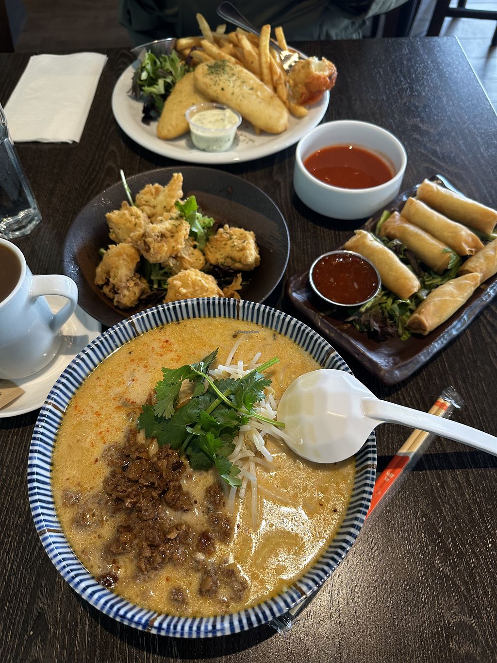 Loved the ramen we ordered. Ordered salmon crispy rice and a tofu dish and popcorn chicken . Everything was so flavourful. Staff was so kind . Portions were great. Would go back if I was in the area .