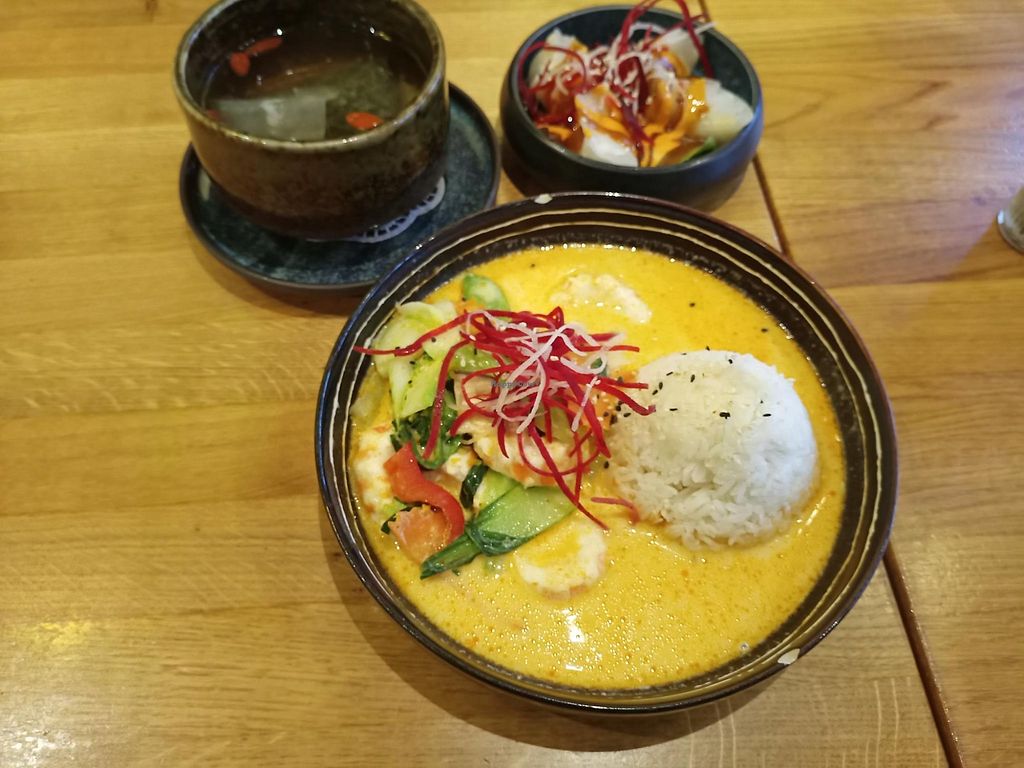 They offer a variety of Asian dishes in a stylish setting. The steamed dumplings were a nice starter with an intense sauce. The red curry was very tasty. The sunny side sushi was a bit too much. We didn't expect so many large rolls. They were the weakest though, there was too much going on. The green tea was nice.