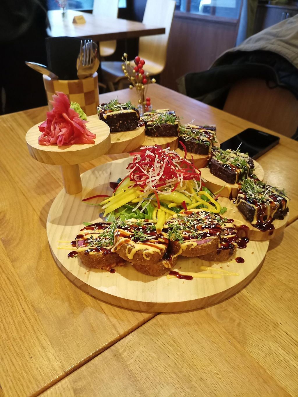 Pros: Only vegan food, Delicious sushi, Fast serving