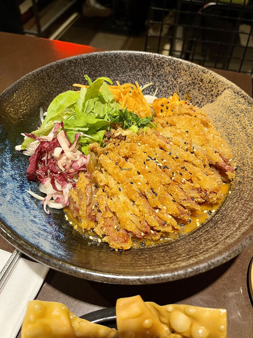 Tasty bowl with fantastic crisp slices of tofu. Very well flavoured.