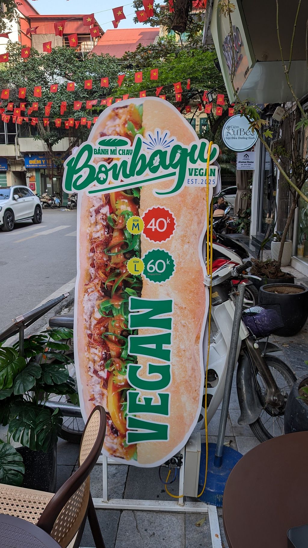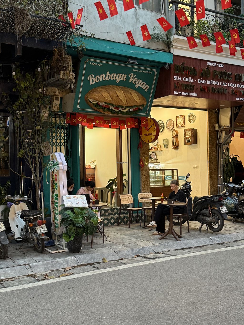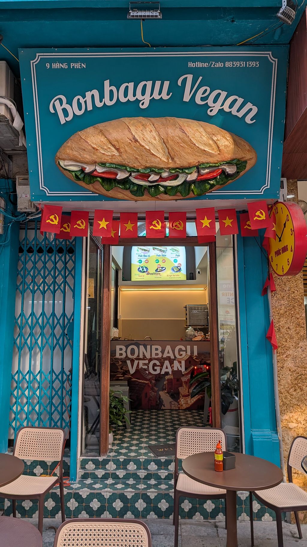 First meal of Hanoi - it didn't disappoint! I tried the mushroom pâté bánh mì, which was delicious. Lots of mushrooms and pickled veggies in a crispy baguette. The owners were very friendly, too!