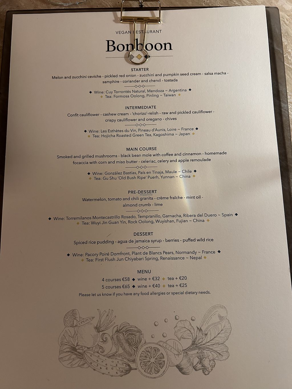 Everything at Bonboon is wonderful. You can opt for five or four courses (and choose which one you skip) and optionally have a wine or tea pairing. The dishes are usually fantastic (creative, tasty, beautifully presented) and the wines too. Service is excellent.