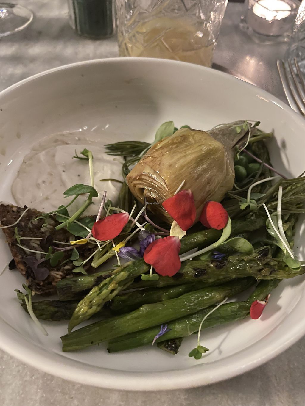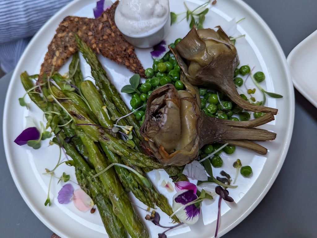 An outstanding veg tasting menu for dinner. The dishes were unusual, creative, and done well. The dishes looked small but were quite dense and hence very filling. A really delightful experience, well worth the cost.