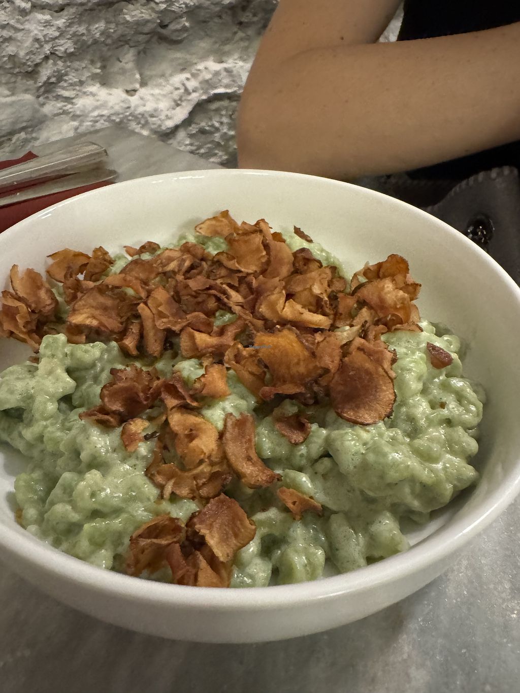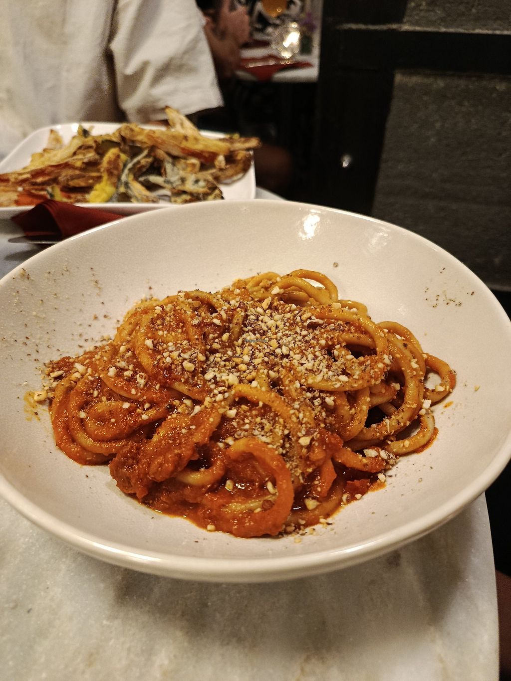 Good restaurant, but too fancy for my liking. As an Italian on vacation in Italy I’m looking for authentic flavours from the tradition. I found the same plates I find in these kind of restaunrats all over the world. Furthermore, Trofie that were not trofie, plus N’Duja in Bologna? And not spicy?