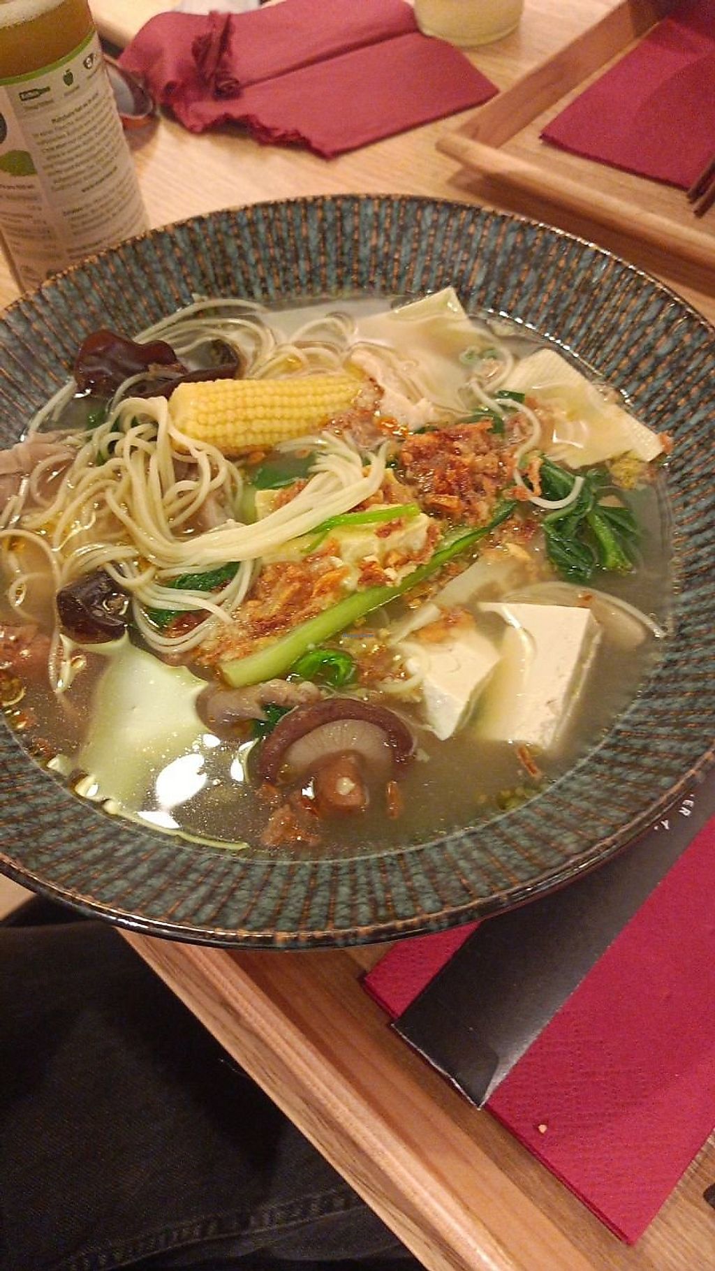 Dieses Restaurant bleibt mir noch lange in Erinnerung! Man kann selber wählen und sich sein Gericht zusammen stellen und somit auch die Portionsgröße. Es gibt drei unterschiedliche vegane Suppen, aus denen man wählen kann. Man kann sich eine gebratene Bowl machen lassen. Anschließend kann man je nach Geschmack noch mit verschiedenen Toppings nachwürzen.