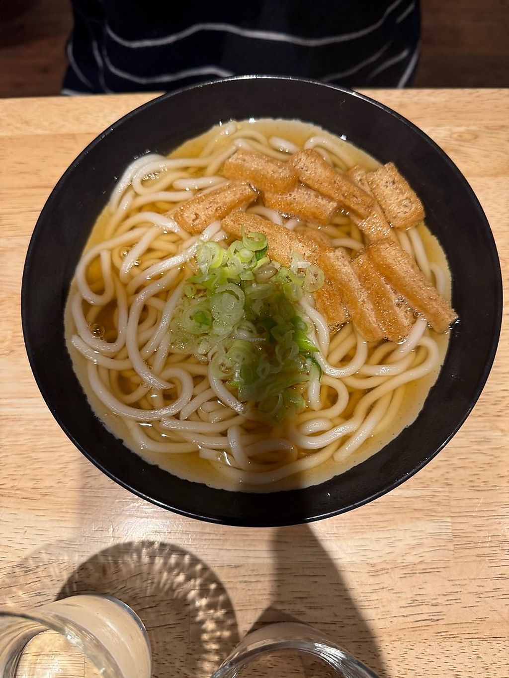 Read moreWe ordered the kitsune, which had nice spongy bits of tofu and lots of spring onions. The broth itself was a bit disappointing, to be honest. It wasn't strongly flavoured. Even when we added two different types of pepper, it was still quite bland. But the noodles were thick and delicious, and the tofu was good too.
