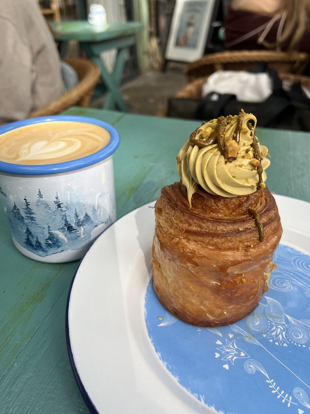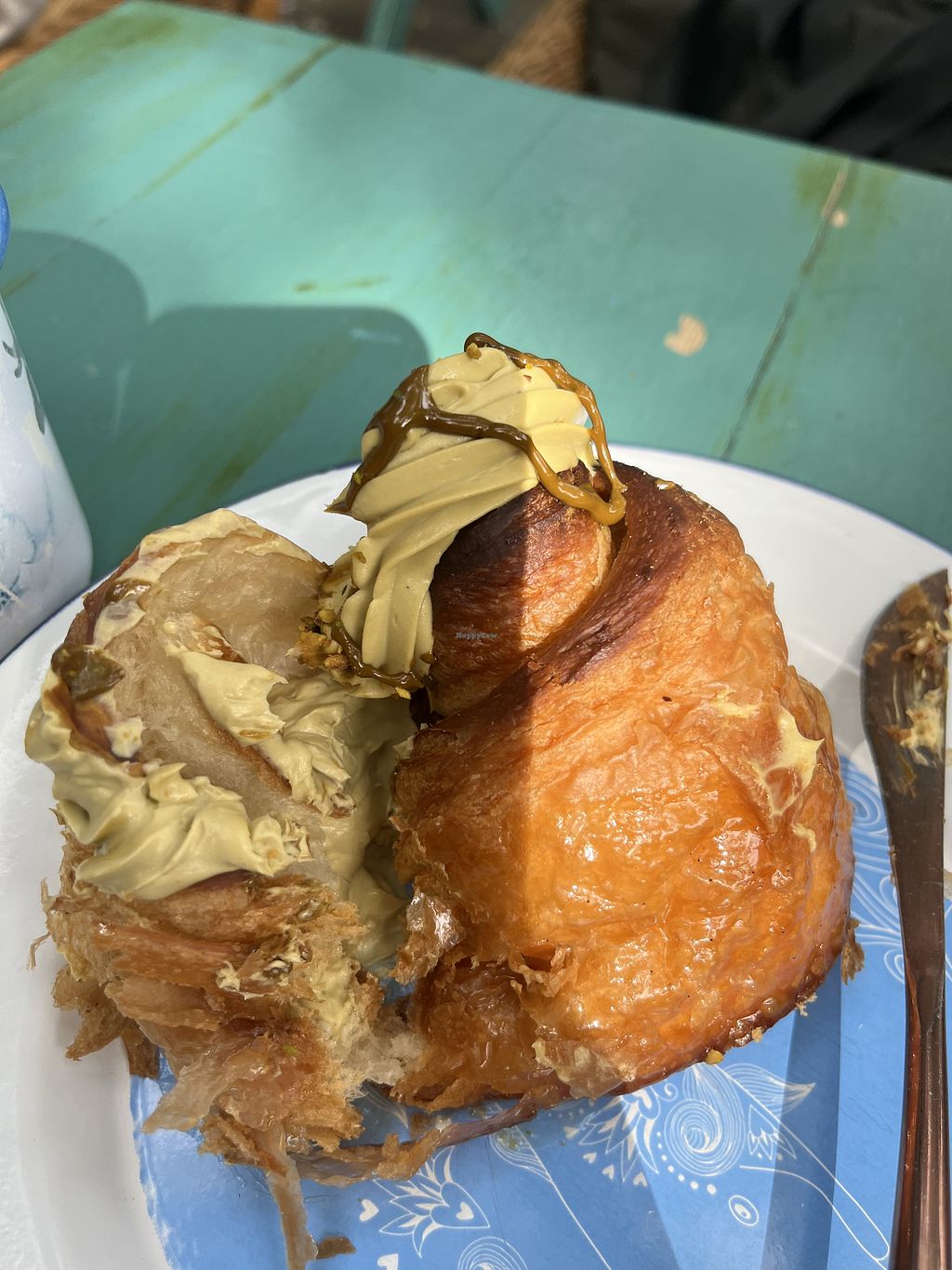 Pros: Vegan pistachio ice cream in a croissant!!, Lovely coffee!!, Nice cosy atmosphere and decor