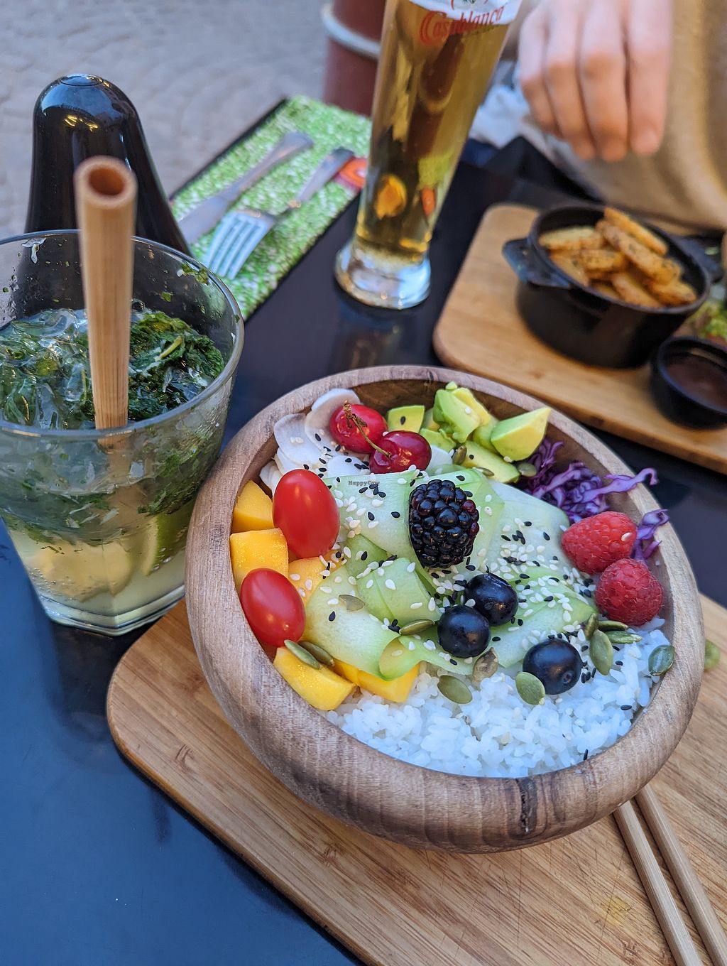 Menu was almost all vegan. A few vegetarian dishes. Fresh juice was good. Poke bowl was vegan and fresh. Burger can be made vegan and came with tasty bbq sauce.