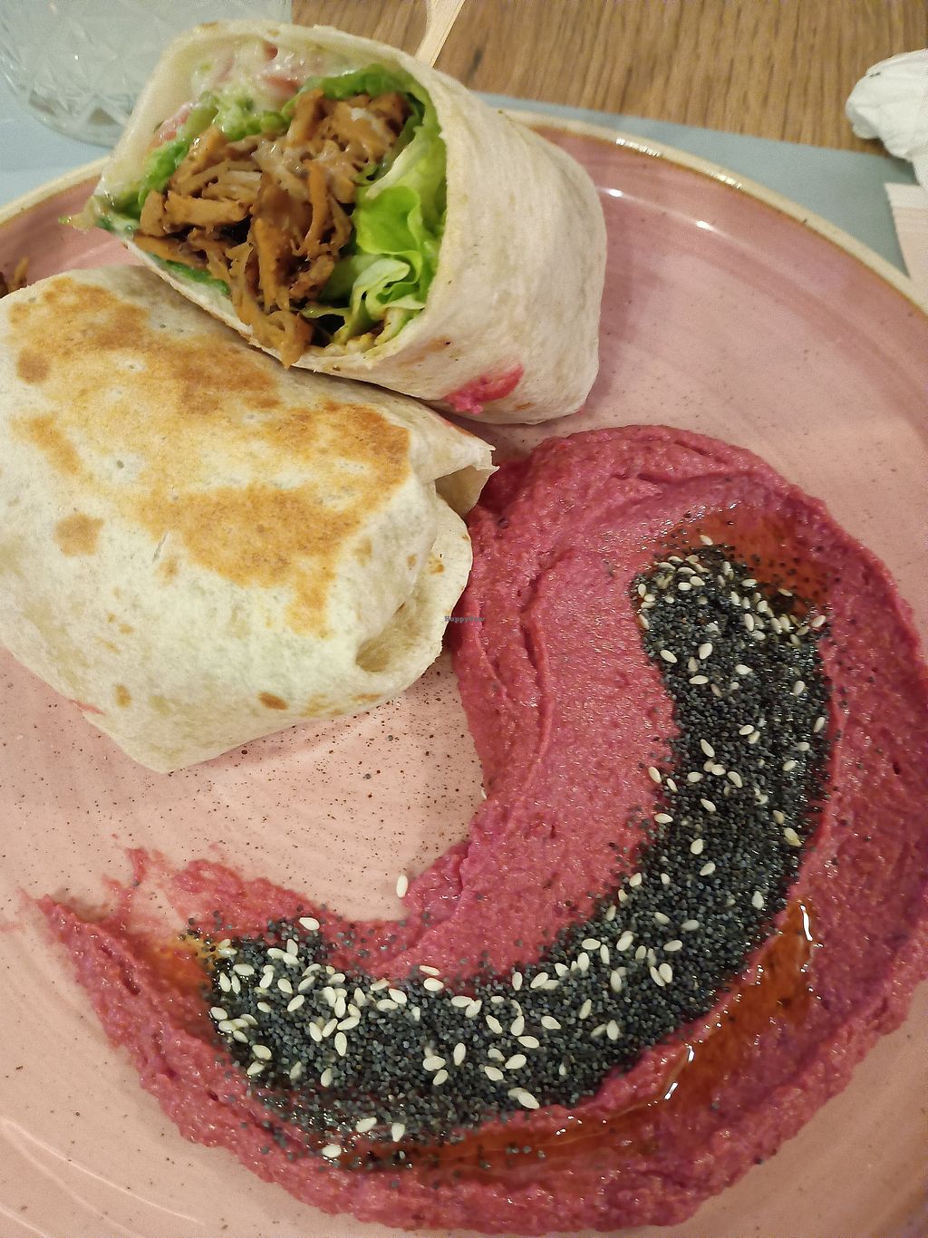 Read moreHanno alcune opzioni vegane tra burrito, toast e burger. Io ho provato il burrito con gli straccetti vegetali accompagnato da Hummus alla barbabietola.