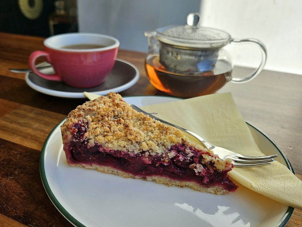 They didn't have vegan bagels and pancakes and all the other stuff listed in the description here, but I had a good avocado toast and some very nice cherry pie.
