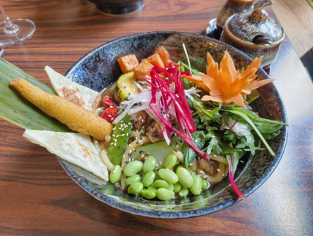 Asian cuisine with a variety of bowls, rice dishes, and tofu dishes. Reported to offer cow's cheese April 2025. Open Mon-Thu 11:30-22:00, Fri-Sat 11:30-22:30, Sun 11:30-22:00.