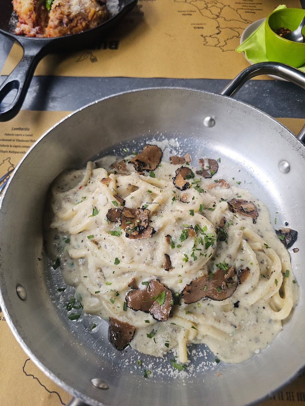 We had the carbonara and truffle spaghetti both of which were really delicious. Don't be fooled by the images on the reviews, the portions are a great size and you won't be hungry after! We also had blue berry cheesecake and the chocolate pizza, but we ate it before we took a photo 😆