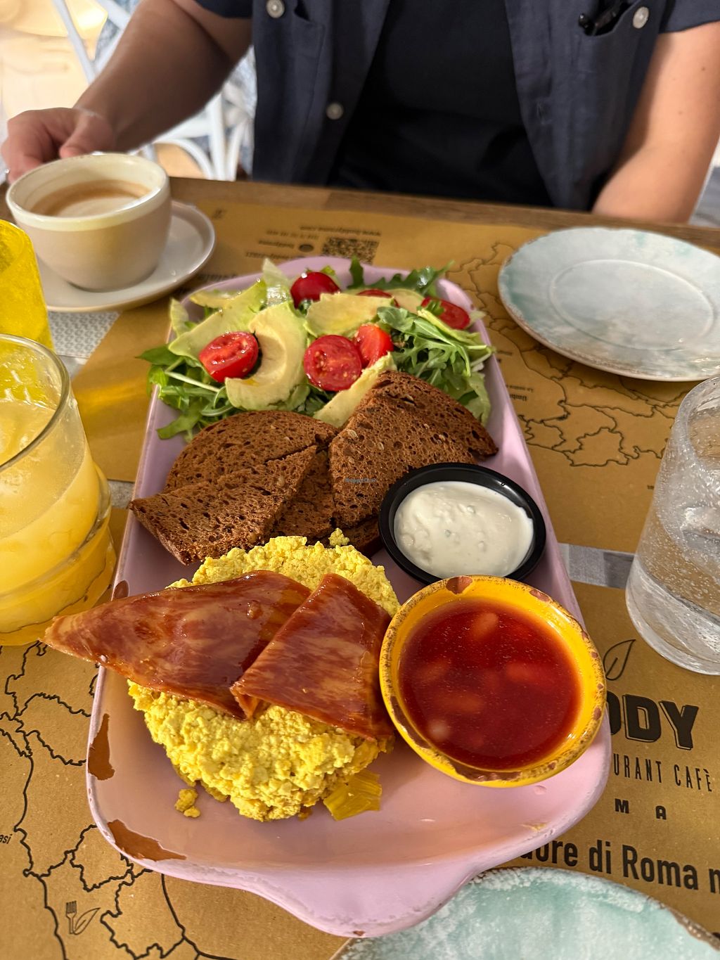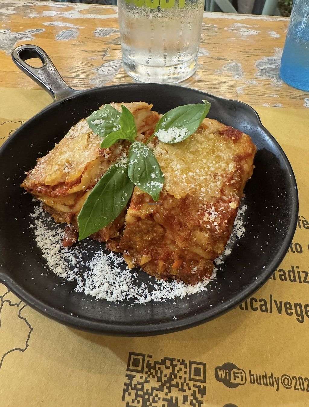 We visited Buddy twice, since its the restaurant closest to where we’re staying in Rome, and we were s bit disappointed. The brunch is almost exclusively processed or frozen and reheated food with some vegetables. The tofu scrambled was a bit plain, not seasoned enough. Other day we’ve had the pinsa (kind of pizza) and it was very oily and the cheese was the typical coconut oil cheese that jist isn’t that tasty. The dessert served with brunch was just reheated frozen cake. There are better options (especially for pizza)in Rome, although they might nit be fully vegan, which we prefer.