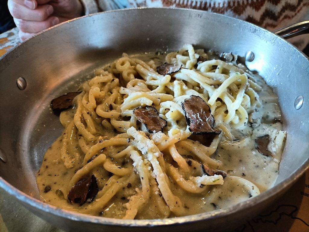 We stopped for lunch and had pasta dishes. They were good, flavourful and large portions. Worth a stop if you’re nearby.