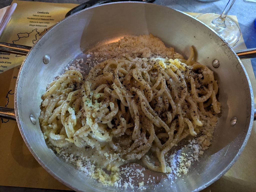 We tried the supplì which was good but needed a bit more cheeze, the pinsa diavola was very good, and the cacio e pepe was very tasty and creamy!