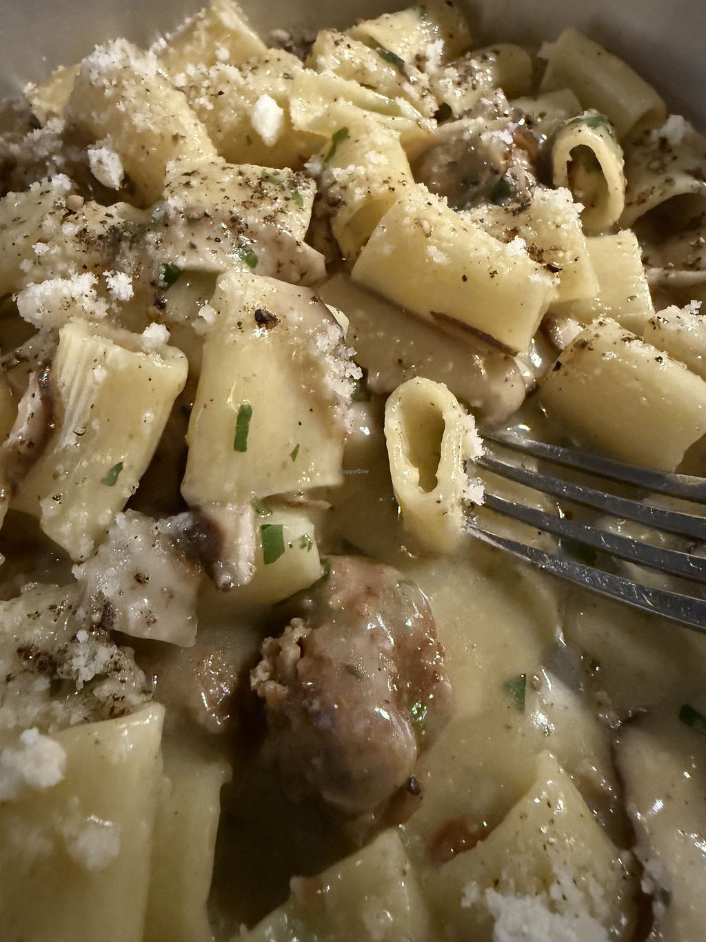 I was really disappointed. The meal looked good but the sauce had no flavour and could hardly taste the mushrooms. The only thing that had flavour was the vegan sausage thing in the pasta.