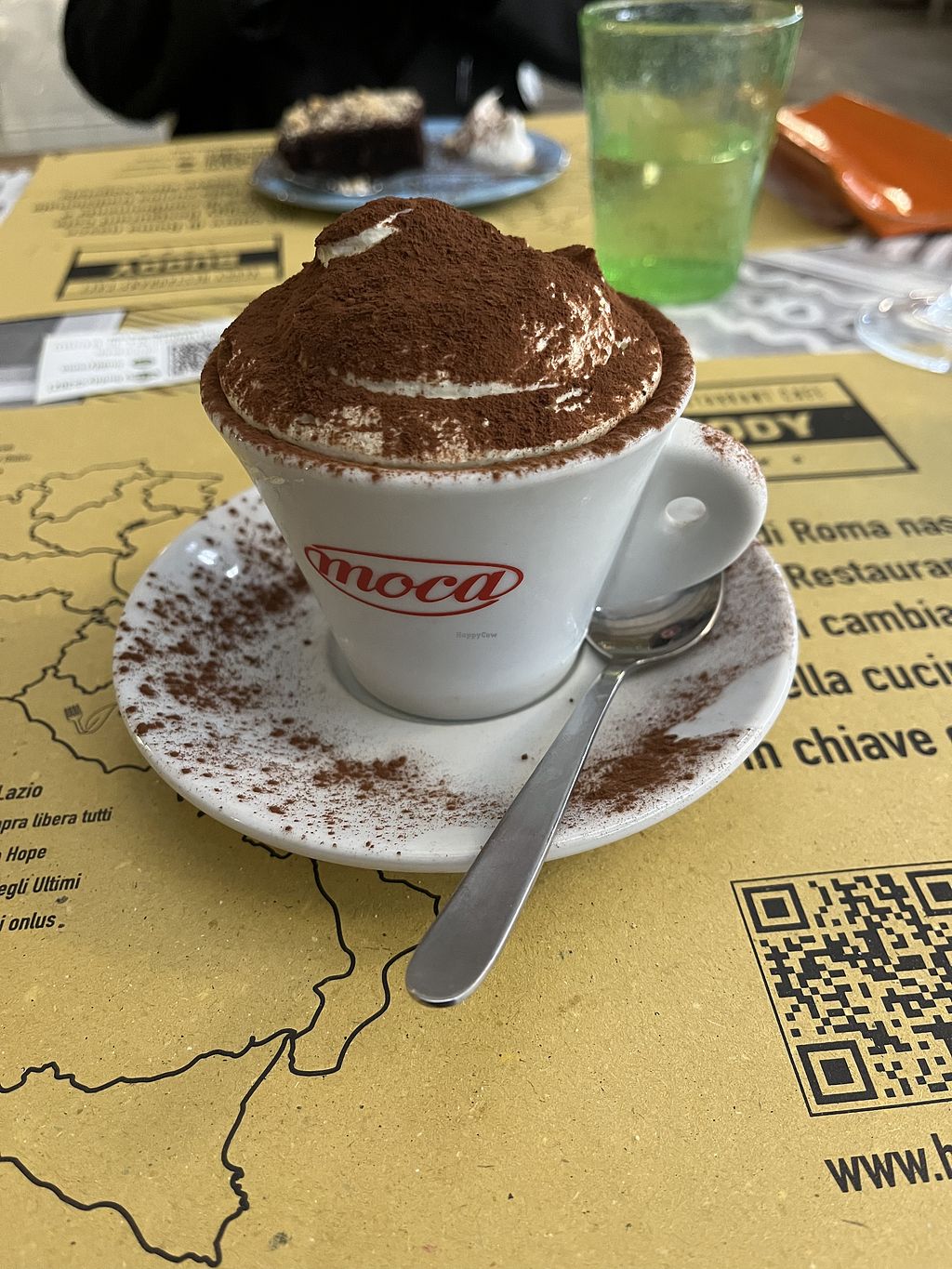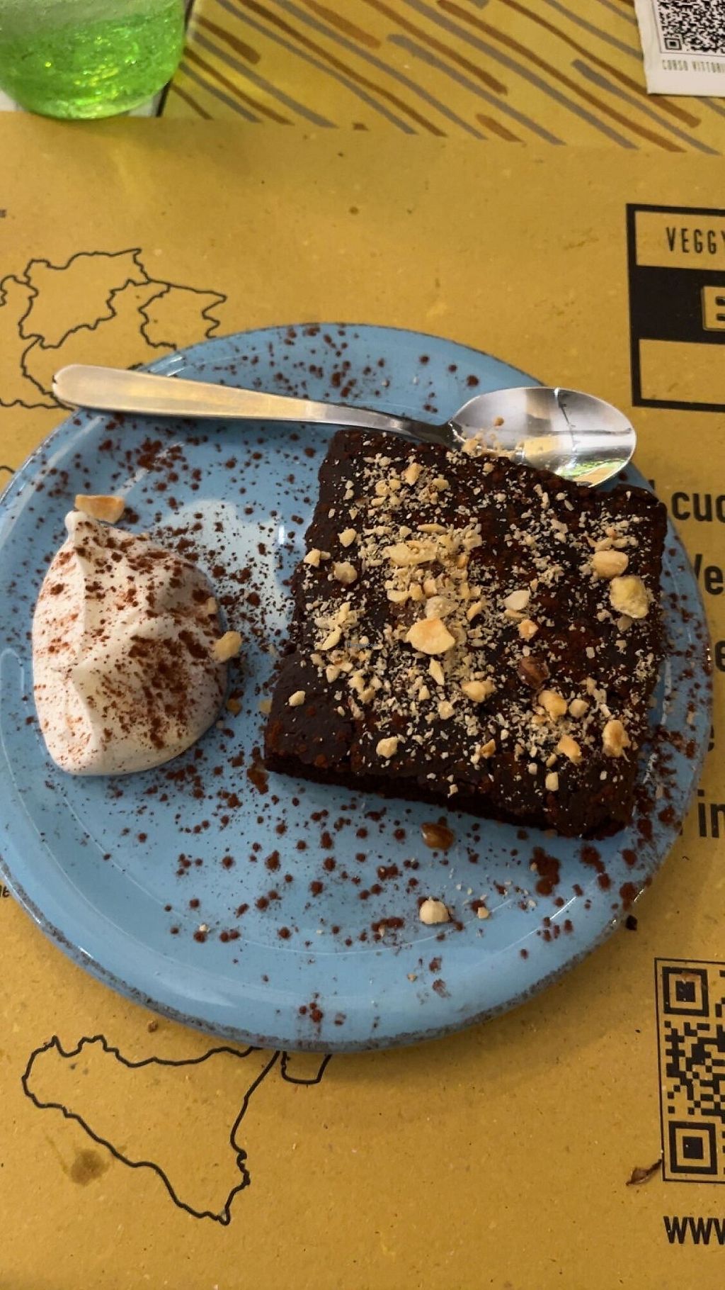 Vegan restaurant serving Italian and global dishes. Been there twice, once for an amazing lasagna, wine and torta al cioccolato, and another for an american brunch including breakfast plate of vegan omelette, a little salad, beans, veg bacon, a juice, caffe and a brownie cake.