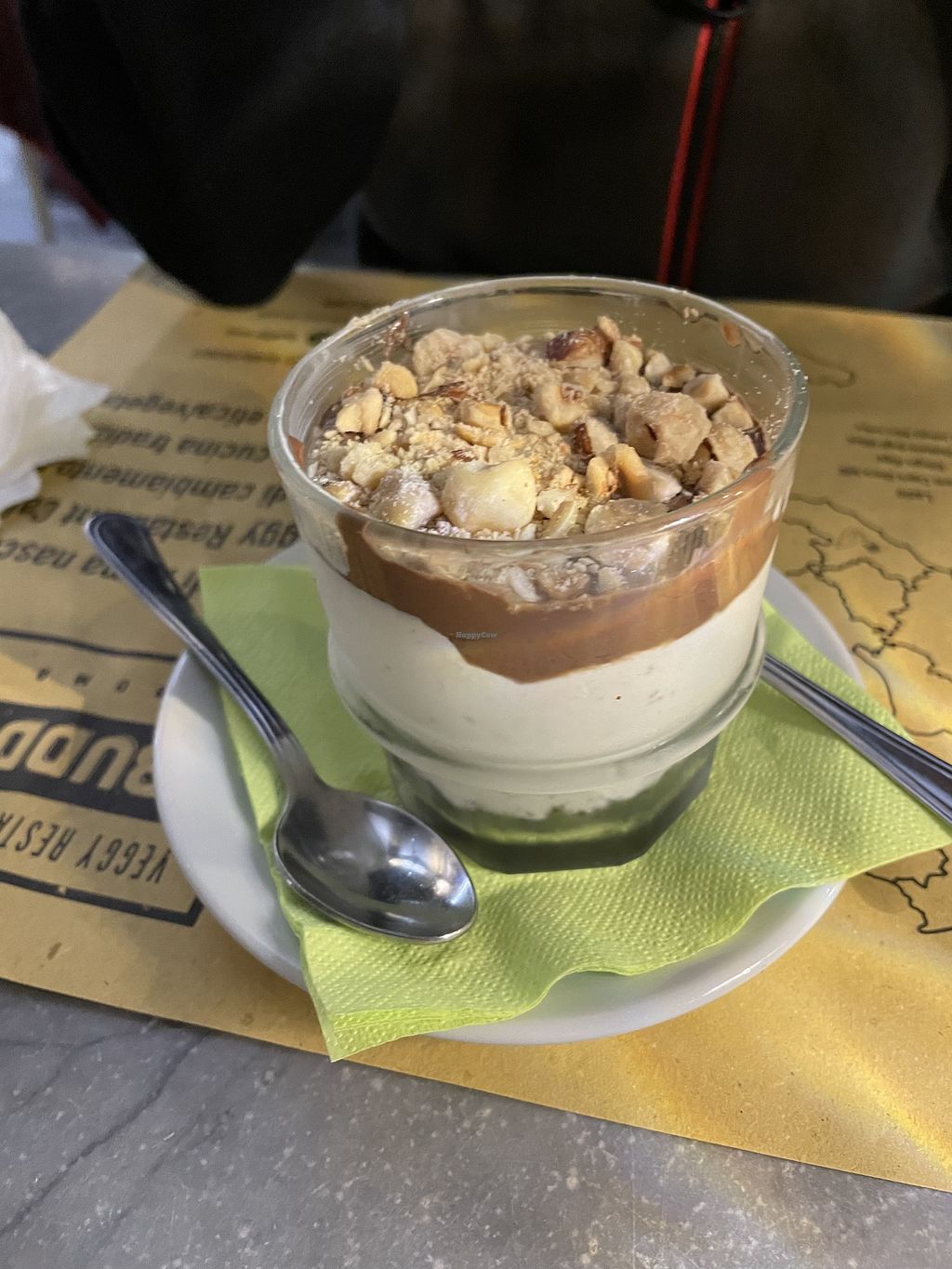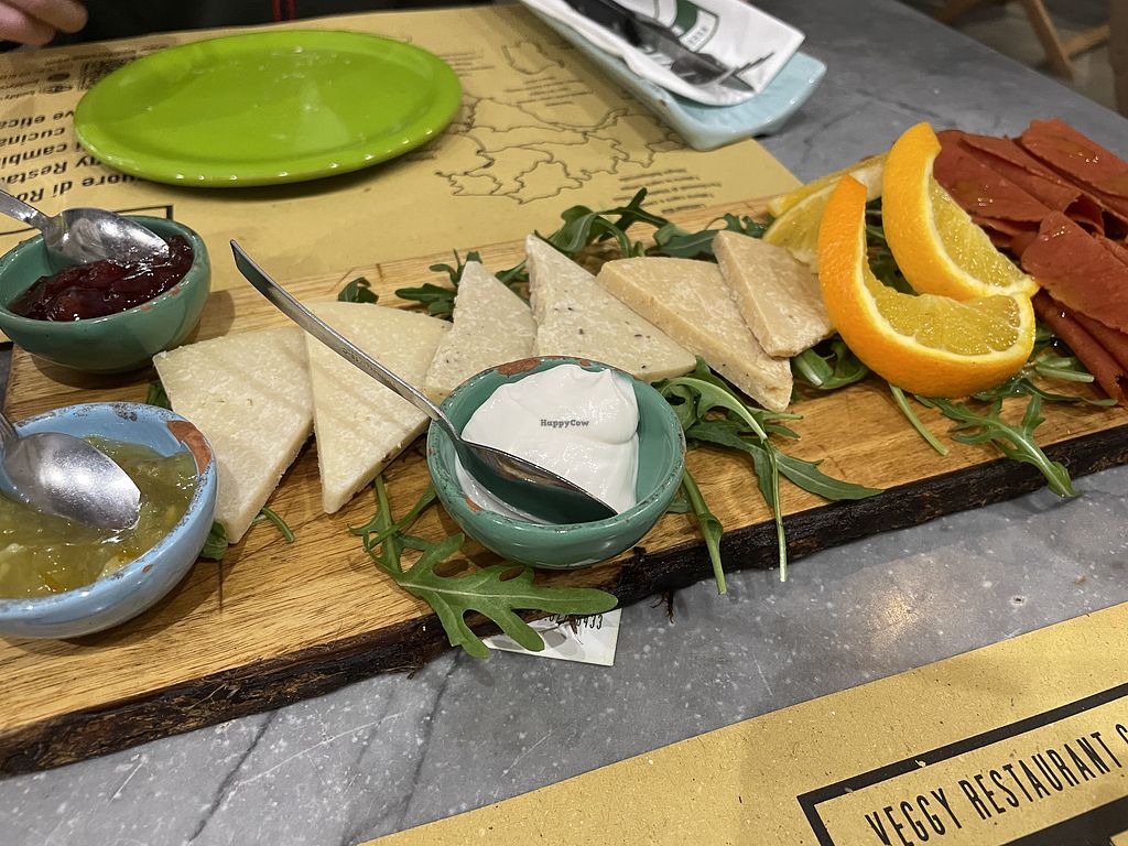 Buddy Veggy was incredible both in food and service! They have a very expansive menu including many classic vegan dishes made vegan. They also have a nice selection of vegan wines. Our server was helpful with recommendations and also very passionate about veganism! We got the cutting board for an appetizer and my partner says it was the best vegan cheese he has ever had. For our meal we got the carbonara and spaghetti with truffle. The both pastas were creamy and flavorful. It was the best vegan carbonara I had in Rome! For dessert our server recommended the tiramisu and hazelnut cheesecake. The tiramisu had a subtle coffee flavor with rich texture. The cheesecake was almost a mousse consistency and absolutely lovely! Prices were a little expensive but very worth it for the quality of the food. I would 100% eat here again!