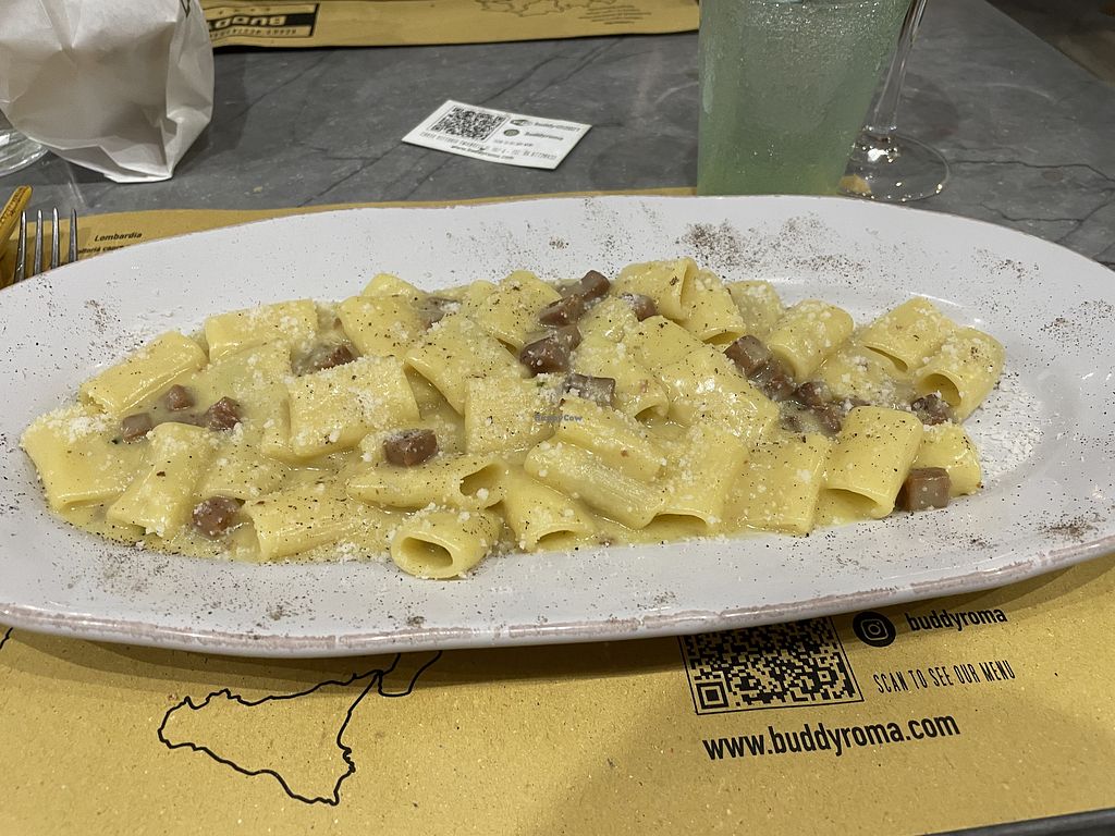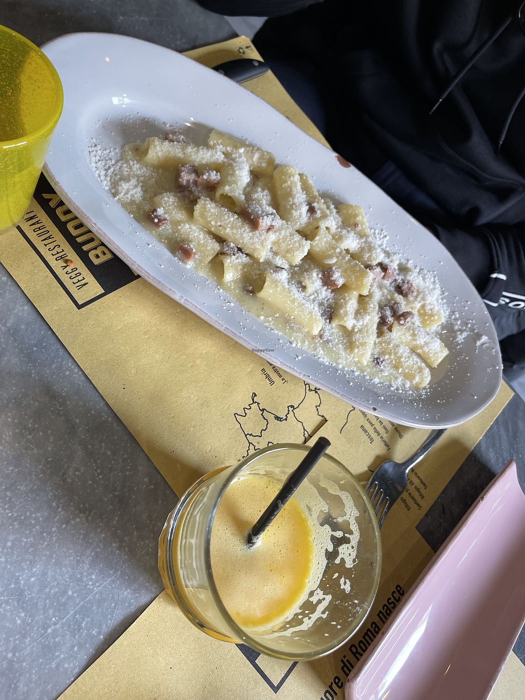 I read the reviews and I was expecting more! It’s not bad, but not the best pasta.. anyway it’s worthy. I had the Gricia pasta and my husband the carbonara.