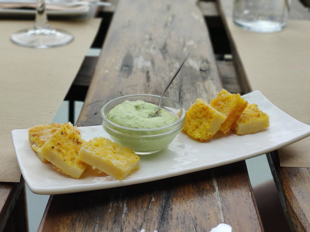 Based on previous reviews I got there early. Buenavida is tucked inside (not street side) Fañabé Plaza, with plenty of outdoor seating. After I ordered, I was given a delicious chickpea omelette amuse bouche. The menu isn’t huge, but it’s well crafted!