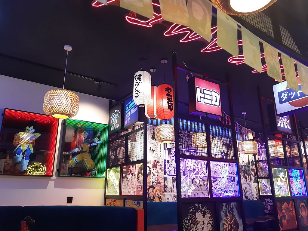 O local tem uma decoração temática de animes. O ambiente é um pouco apertado e cheio (fui no horário da noite). As mesas são um pouco próximas demais uma das outras. Apesar de cheio, não precisei esperar muito na fila e também para o pedido, foi tudo rápido.