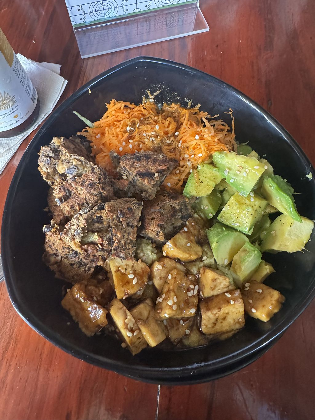 I really liked this place - vast menu with a lot of vegan options and vegan cheese. I had one of the bowls and my partner had a black bean burger and all was so delicious. Highly recommend if you’re looking for something a little healthier or are travelling through and want something plant based.