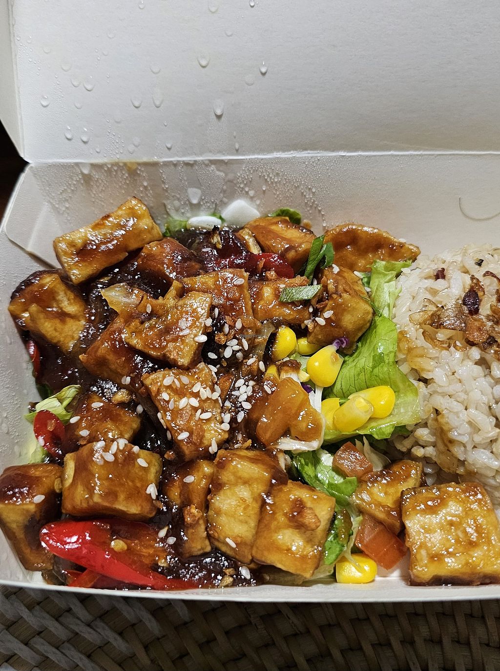 I really like the mixed grain fried rice (umami), vegan fudge brownie (decadent), and dalgona (not too sweet and delicious)