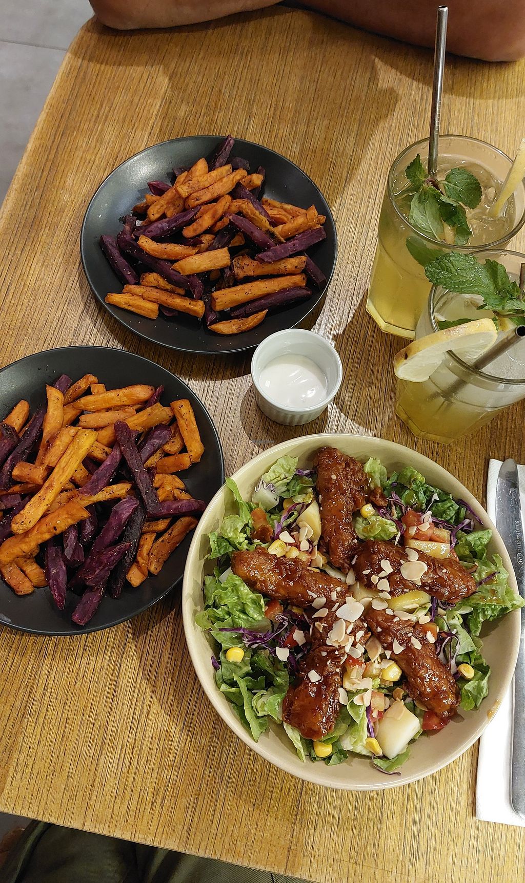 I really enjoyed the good, we had two salades (ceasar and sweet&sour chicken). The sweet&sour chicken was the best in my opinion. We ordered the coffee with milk, which was surprisingly good. Only negative was that coffee was not really clearly labelled on the menu.
