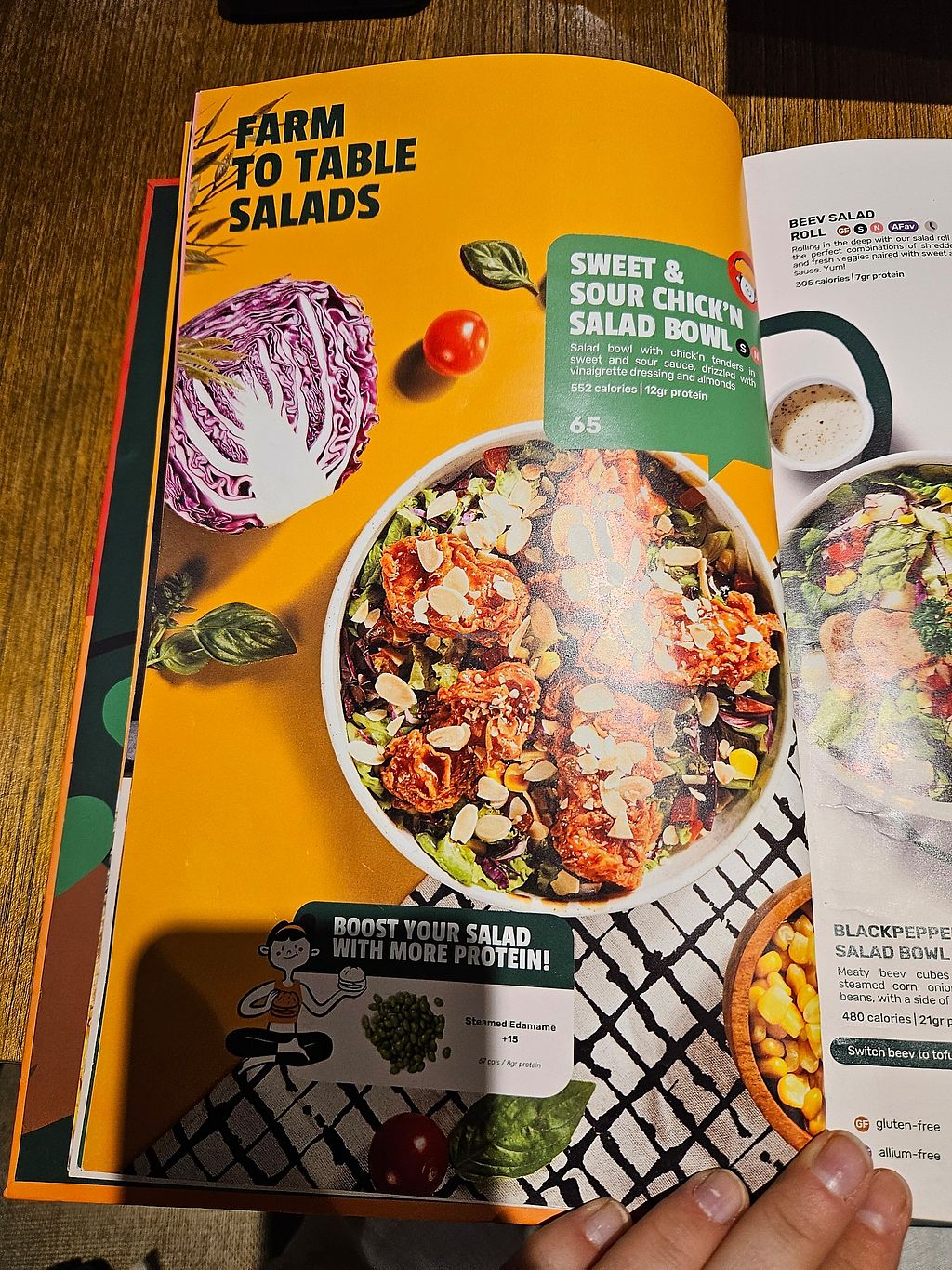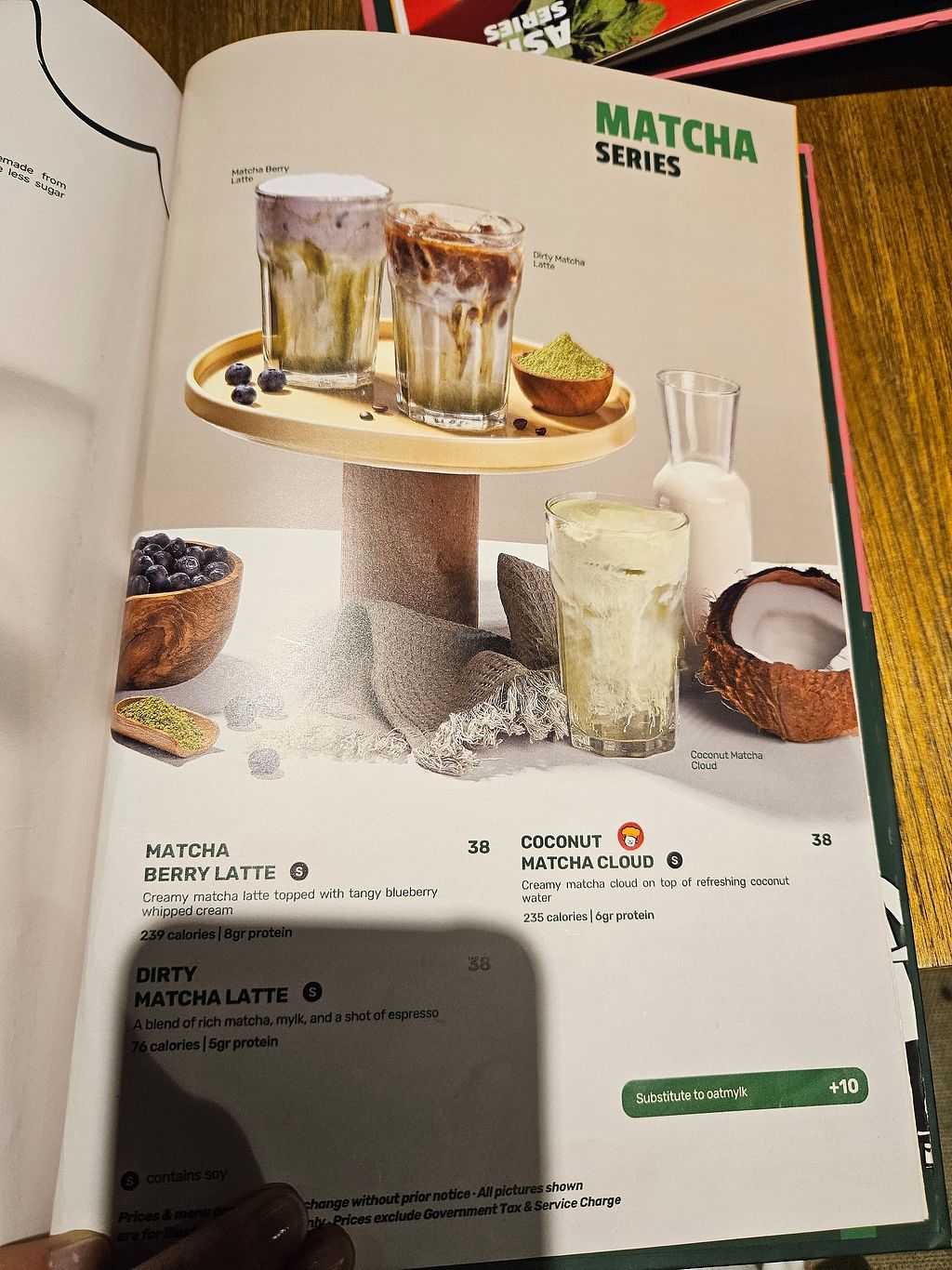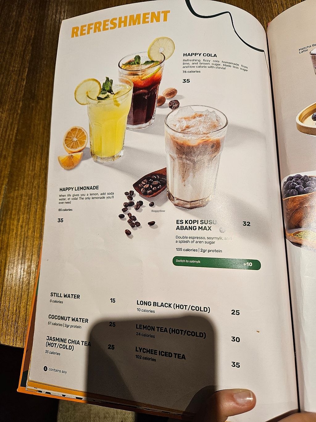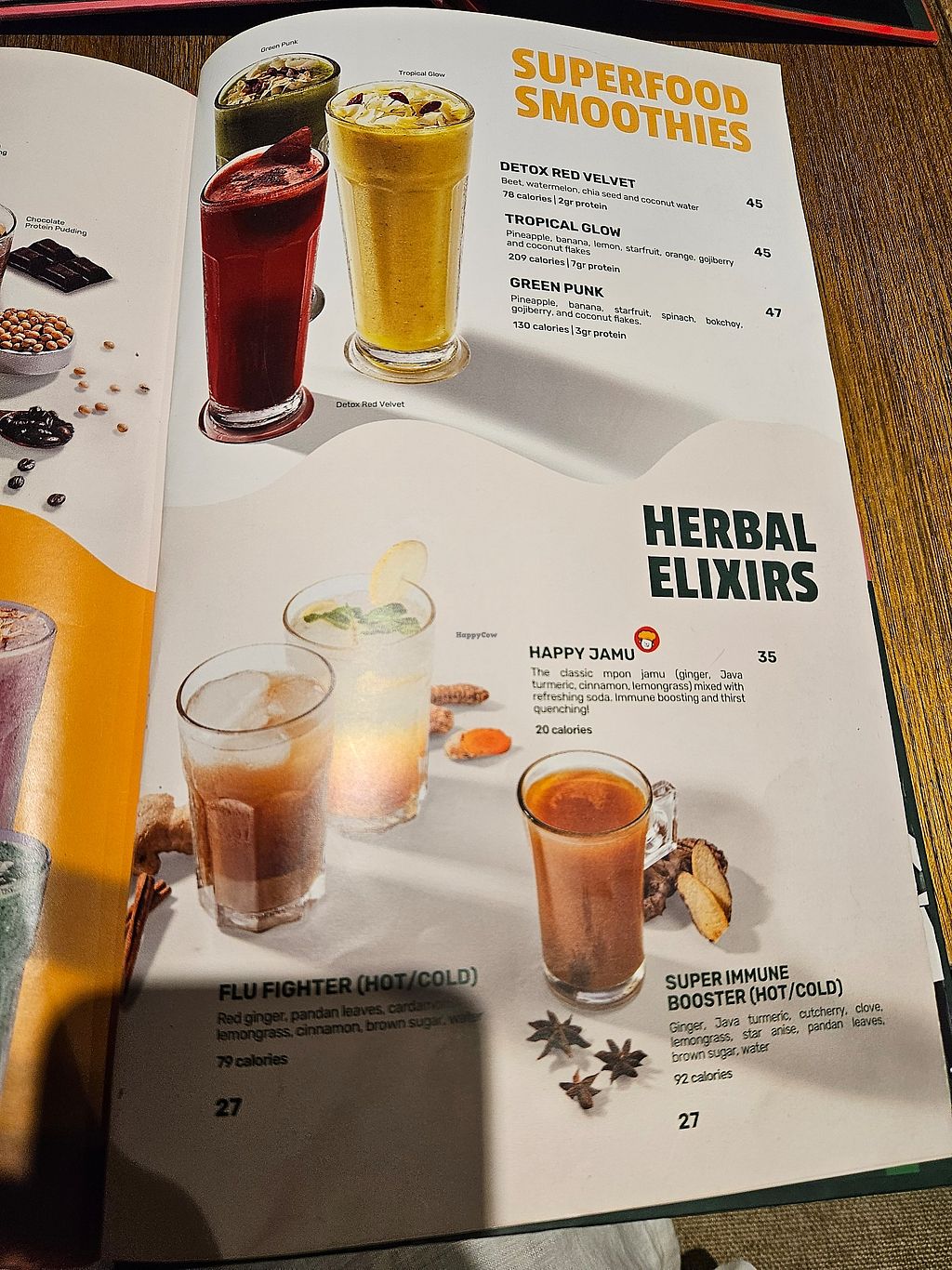 We visited Burgreens twice. We tried plenty of drinks and food as Coconut water, Brown Sugar MYLK TEA Boba (medium sweet), hot Flu fighter very strong and Super Immune Booster, Strawberry Kenary Nut Cheesecake (little sweet), Mighty Green Bowl not sweet but very frozen and Soto indonesian cuisine. The meal really looks like on the pictures, exactly. Nice place tasty options. I really recommended.
