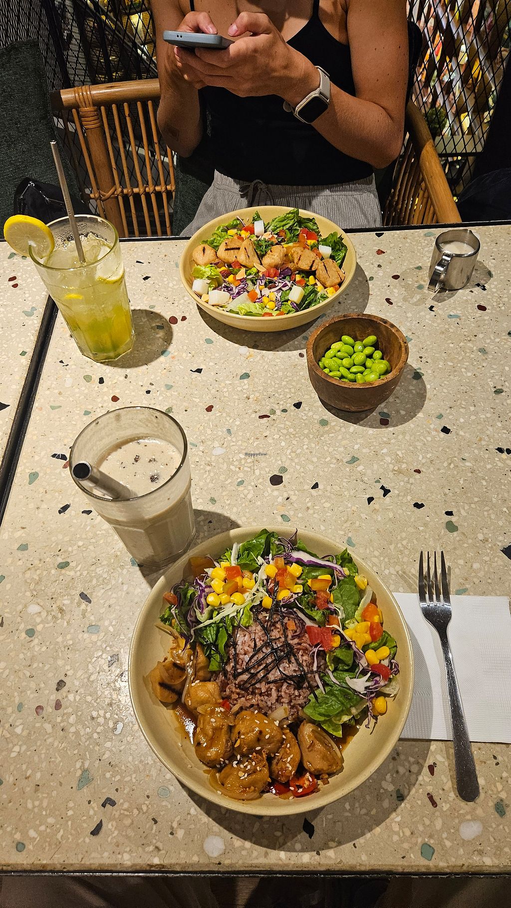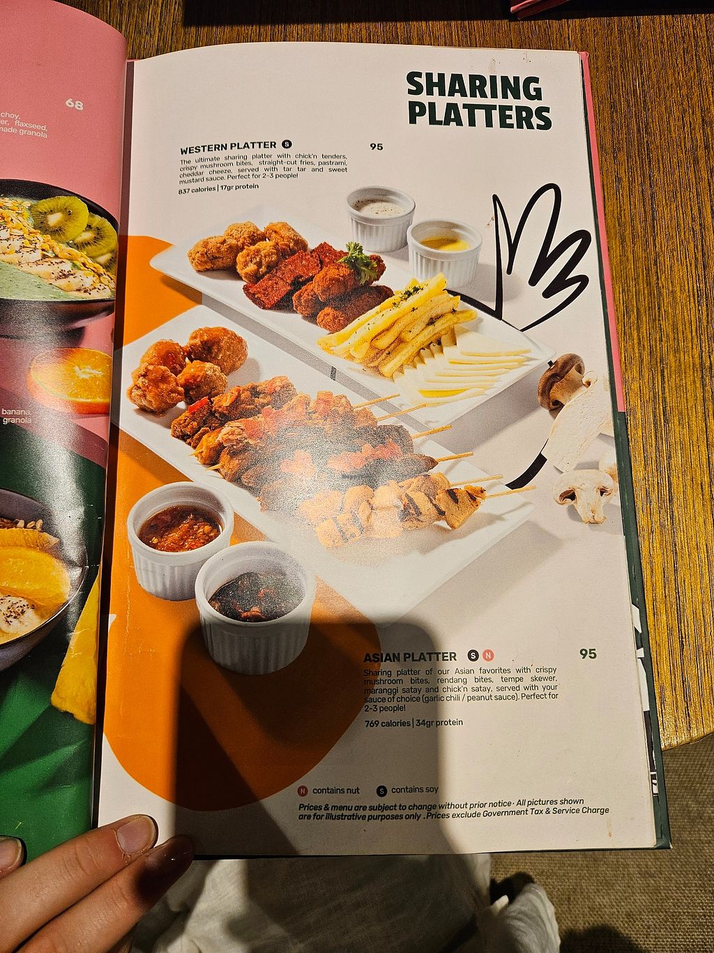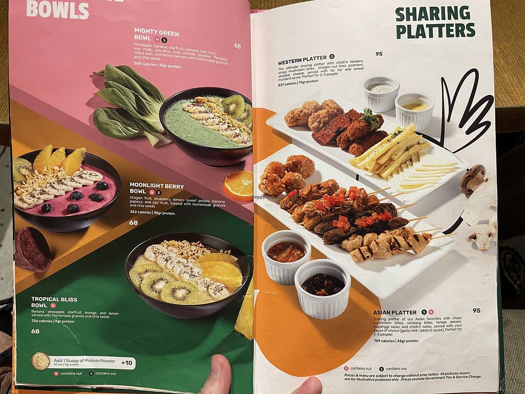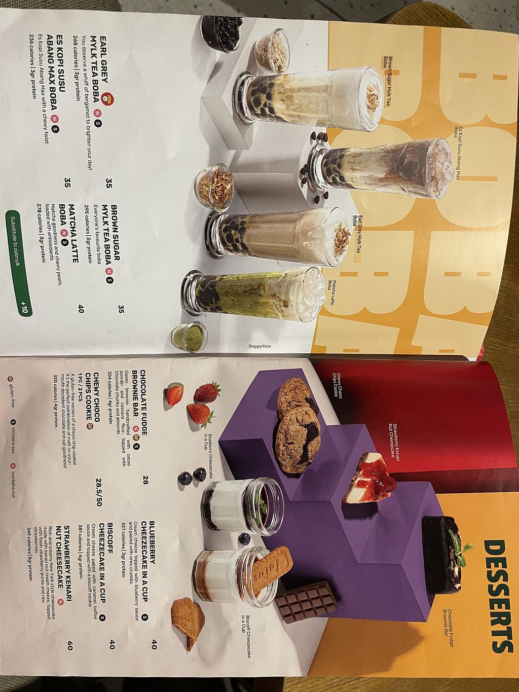 We tried the vegetarian lasagne with Soymilk Brown sugar Boba and protein combo no.1(Reg Vegan Rendang Bowl Moonlight Berry Shake).